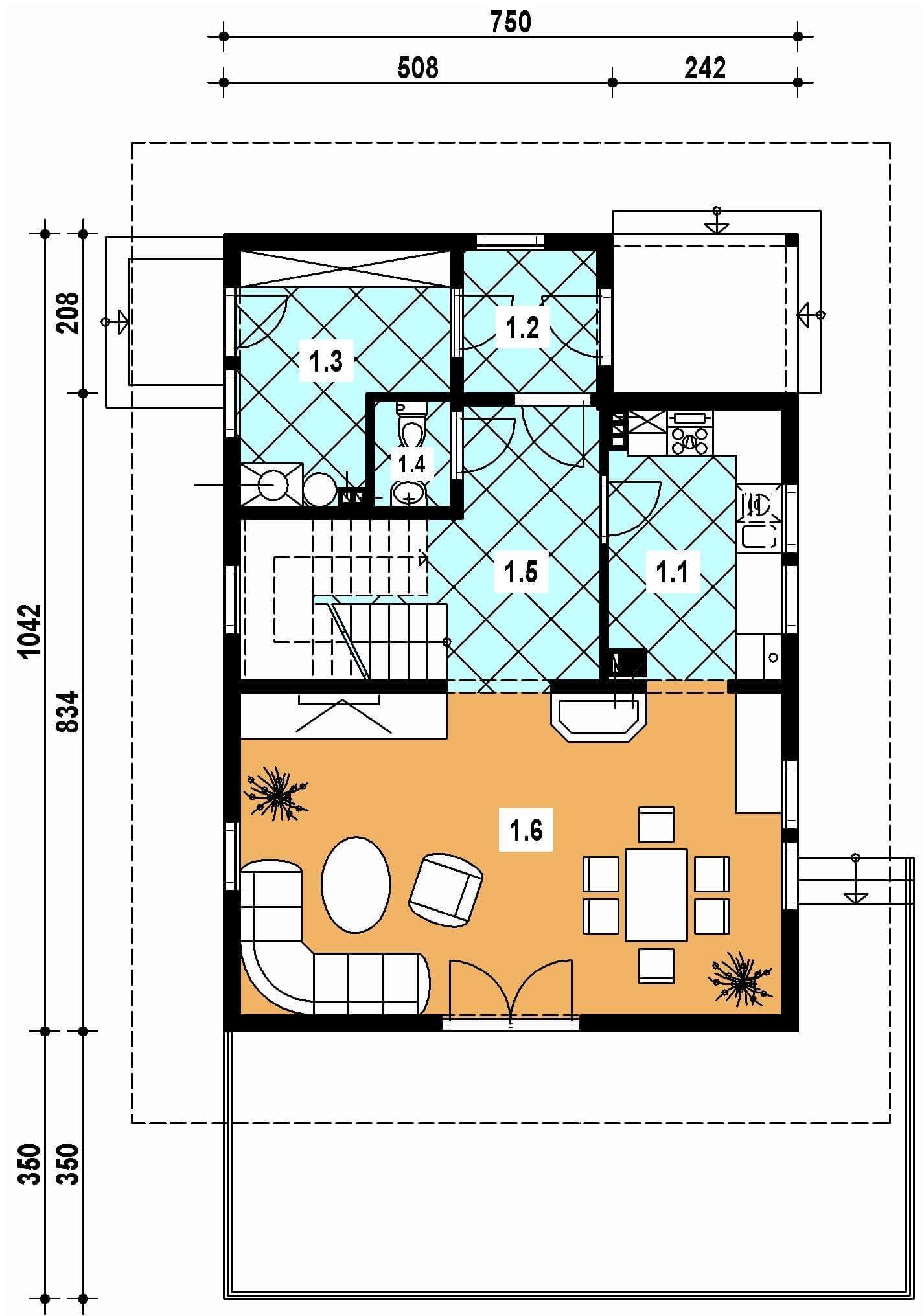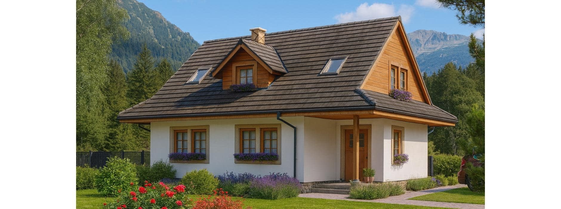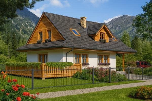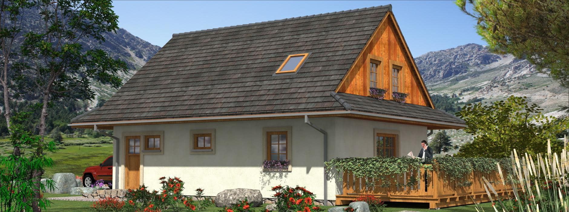 Projekt domu A-100 „DOM SŁODKA” – tradycja górska i nowoczesna funkcjonalność Projekt A-100 „DOM SŁODKA” to niewielki dom jednorodzinny, w którym klasyczna elegancja spotyka się z wygodą codziennego życia. Architektura budynku nawiązuje do stylu górskiego – charakterystyczne przydaszki oraz lukarna w dachu nadają mu wyjątkowego klimatu i sprawiają, że bryła prezentuje się atrakcyjnie oraz ponadczasowo. Parter – funkcjonalność na pierwszym miejscu Na parterze zaprojektowano przestrzeń odpowiadającą na praktyczne potrzeby mieszkańców. Szczególnym atutem są obszerne pomieszczenia gospodarcze dostępne przez osobne wejście z zewnątrz. Takie rozwiązanie znacząco zwiększa komfort użytkowania – pozwala wygodnie przechowywać narzędzia, sprzęt ogrodowy czy rowery, bez ingerowania w część mieszkalną. Poddasze – prywatna strefa domowników Poddasze mieszkalne zostało zaprojektowane jako przestrzeń nocna. Największą zaletą jest sypialnia rodziców z garderobą, która daje wygodę i poczucie prywatności. Obok znajdują się dodatkowe pokoje dla dzieci lub gości, a także łazienka z lukarną, której naturalne doświetlenie nadaje wnętrzu przytulny i elegancki charakter. Dom o niepowtarzalnym klimacie Projekt domu „DOM SŁODKA” A-100 to propozycja dla rodzin poszukujących niewielkiego, ale funkcjonalnego domu w tradycyjnym stylu górskim. Kompaktowa bryła uzupełniona o praktyczne rozwiązania i starannie przemyślany układ wnętrz sprawiają, że to projekt łączący w sobie estetykę, wygodę i praktyczność. To idealny wybór dla osób, które chcą mieszkać w domu o wyjątkowym klimacie, a jednocześnie korzystać z nowoczesnych udogodnień.Rzuty