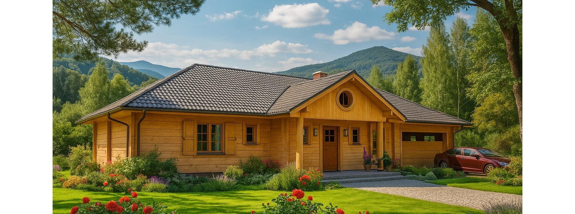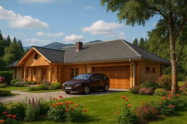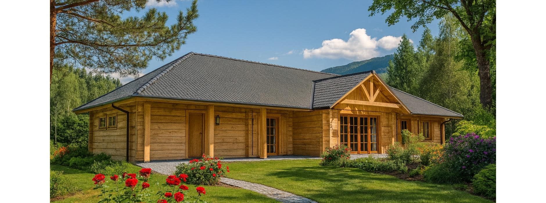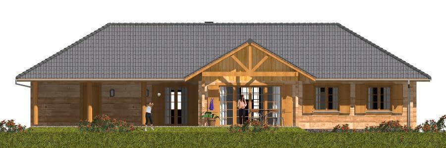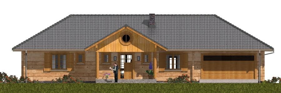 Projekt domu z bali A-105 „DOM BOCIANIA” – tradycyjny dom w stylu staropolskiego dworku. A-105 „DOM BOCIANIA” w technologii z bali to propozycja dla inwestorów marzących o kameralnym domu parterowym z poddaszem użytkowym, który łączy styl dworku staropolskiego z przytulnym klimatem naturalnego drewna. To projekt, który zachwyca elegancją, funkcjonalnością i przyjaznym mikroklimatem wnętrza. Architektura i charakter domu z bali: bryła na planie prostokąta, dach wielospadowy podkreślający styl dworku, naturalna elewacja z bali – ekologiczna i ponadczasowa, taras z zadaszeniem, sprzyjający relaksowi o każdej porze dnia. Projekt został stworzony z myślą o działkach z wejściem od zachodu, co pozwala najlepiej wykorzystać światło dzienne w części dziennej i tarasowej. Układ funkcjonalny domu: Parter – przestrzeń wspólna: duży salon z kominkiem i wyjściem na taras, jadalnia z widokiem na ogród, funkcjonalna kuchnia z dużą spiżarnią, łazienka i osobne WC, bezpośrednie połączenie z garażem dwustanowiskowym. Poddasze – strefa nocna: trzy komfortowe i dobrze doświetlone sypialnie, przestrzeń na pojemne szafy i garderoby, łazienka z wanną, prysznicem i podwójną umywalką. Atuty domu z bali A-105 „DOM BOCIANIA”: zdrowy mikroklimat sprzyjający domownikom, naturalna termoizolacja i energooszczędność, tradycyjny wygląd w stylu dworku, wygodny podział stref dziennej i nocnej, garaż na dwa samochody wkomponowany w bryłę domu. Dom z bali A-105 „DOM BOCIANIA” to doskonały wybór dla osób ceniących styl tradycyjny, funkcjonalność i ekologiczne materiały. Projekt ten łączy wygodę nowoczesnego domu z niepowtarzalnym klimatem staropolskiego dworku.Rzuty
