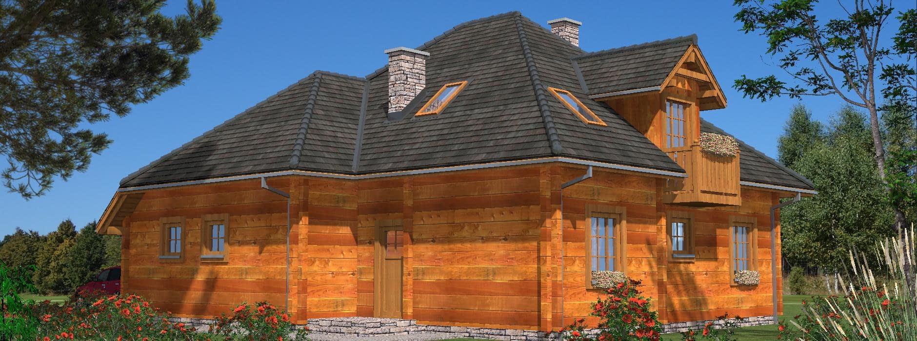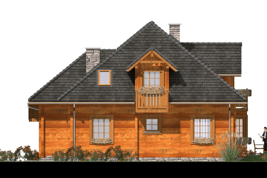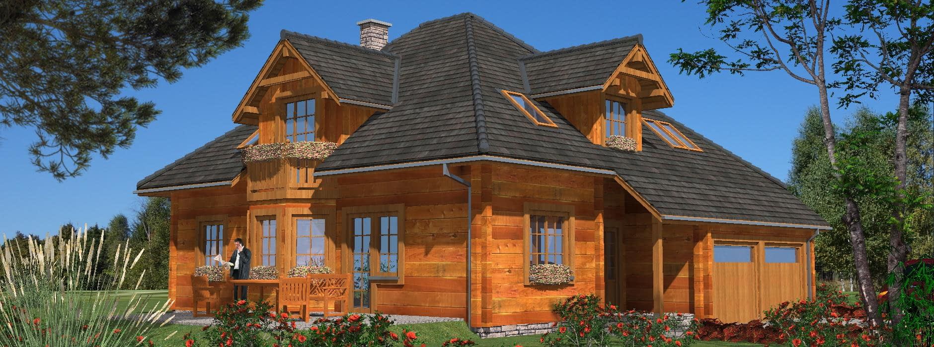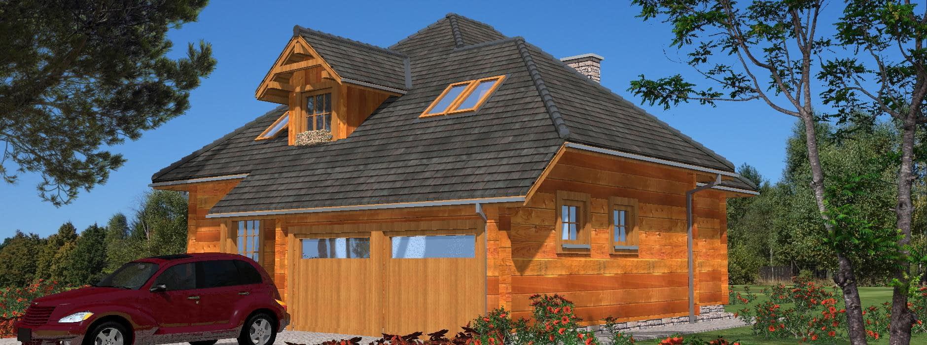 Projekt domu z bali A-107 „DOM KRUCZA” – przestronny dom dla dużej rodziny. A-107 „DOM KRUCZA” w technologii z bali to propozycja dla inwestorów, którzy marzą o dużym, wygodnym i przytulnym domu dla całej rodziny. Parterowy budynek z poddaszem użytkowym i garażem podwójnym łączy tradycyjną estetykę naturalnego drewna z nowoczesnym podejściem do funkcjonalności. Architektura domu z bali: Projekt oparto na klasycznej bryle przykrytej dachem dwuspadowym. Elewacja z naturalnych bali nadaje domowi unikalnego charakteru, a we wnętrzu zapewnia zdrowy mikroklimat. Duże przeszklenia w części dziennej otwierają dom na ogród, a kominek w salonie podkreśla przytulny klimat. Układ pomieszczeń – wygoda i funkcjonalność: Parter – komfortowa strefa dzienna: przestronny salon z kominkiem i aneksem jadalnym, osobna kuchnia połączona z salonem poprzez jadalnię, sypialnia rodziców z własną łazienką, osobna toaleta dla gości, kotłownia z możliwością montażu pieca na paliwo stałe, garaż podwójny z przejściem do wnętrza domu. Poddasze – strefa nocna: cztery duże sypialnie, jedna z garderobą, dwie w pełni wyposażone łazienki, przestronny hall z możliwością aranżacji kącika rekreacyjnego. Atuty domu z bali A-107 „DOM KRUCZA”: naturalny mikroklimat wnętrza sprzyjający zdrowiu, ciepło i energooszczędność dzięki właściwościom drewna, przestronny układ dla dużej rodziny – aż 6 pokoi, garaż podwójny i kotłownia z możliwością pieca na paliwo stałe. Dom z bali A-107 „DOM KRUCZA” to idealne rozwiązanie dla osób ceniących naturalność, tradycję i przestrzeń. Ten projekt to dom, który nie tylko pomieści dużą rodzinę, ale także zapewni jej zdrowe i komfortowe warunki życia.Rzuty