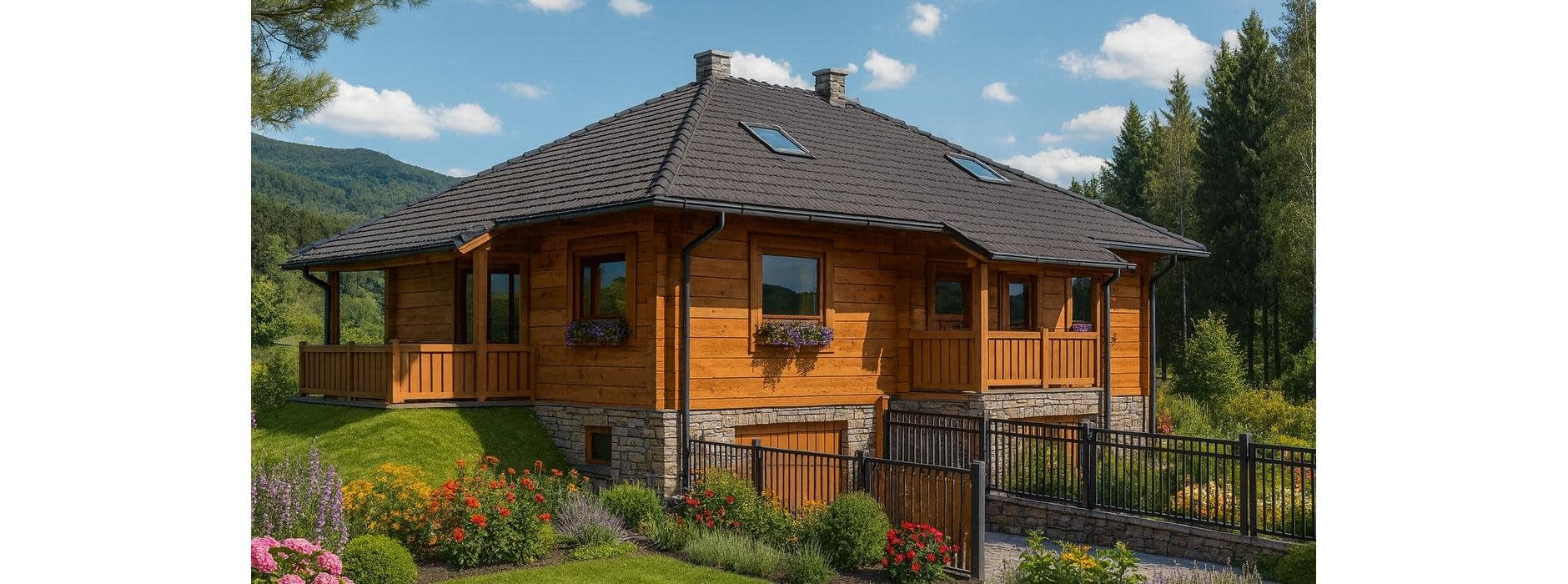 Dom z bali A-110 „DOM KASZTANOWA” to projekt parterowego domu jednorodzinnego, który zachwyca prostotą i przytulnym klimatem. Budynek wzniesiony z naturalnego drewna łączy tradycję z nowoczesnością, oferując komfort i zdrowy mikroklimat wnętrza. Architektura domu z bali: Bryła została zaplanowana na prostokącie, a całość przykrywa czterospadowy dach, który podkreśla klasyczny charakter domu. Elewacja z naturalnych bali sprawia, że dom doskonale wpisuje się w otoczenie natury i wyróżnia się ciepłym, przyjaznym wyglądem. Układ pomieszczeń – wygoda w naturalnym stylu: Parter – strefa dzienna i prywatna: salon z kominkiem i wyjściem na taras, wygodna, oddzielna kuchnia, trzy dodatkowe pokoje (sypialnie), łazienka i wc, hall oraz wiatrołap, garaż jednostanowiskowy. Piwnica i poddasze: częściowe podpiwniczenie – praktyczne miejsce na kotłownię i pomieszczenia gospodarcze, poddasze nieużytkowe – do dowolnej aranżacji w przyszłości. Atuty domu z bali A-110 „DOM KASZTANOWA”: naturalny mikroklimat sprzyjający zdrowiu, energooszczędność – bale akumulują ciepło, klasyczna architektura w stylu tradycyjnego dworku, możliwość adaptacji poddasza na dodatkowe cele. Dom z bali A-110 „DOM KASZTANOWA” to projekt łączący tradycję drewnianego budownictwa z funkcjonalnością nowoczesnego układu. To doskonały wybór dla osób pragnących komfortu w naturalnym i ekologicznym otoczeniu.Rzuty