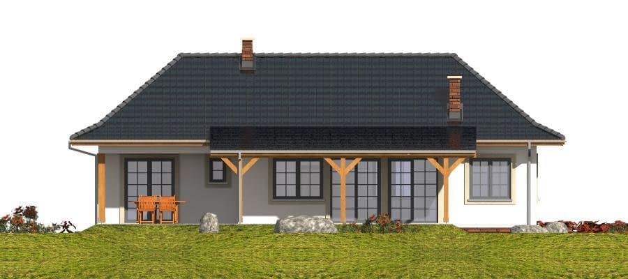 Projekt domu szkieletowego A-113 „DOM OLCHOWA” – elegancki parterowy dom w stylu dworku. Dom szkieletowy A-113 „DOM OLCHOWA” to projekt, który łączy styl polskiego dworku z nowoczesną technologią budowy. Parterowy budynek jednorodzinny w kształcie litery L został zaprojektowany tak, aby zapewnić funkcjonalność, energooszczędność i elegancję w jednym. Architektura domu szkieletowego Dom wyróżnia się klasyczną bryłą inspirowaną stylem dworkowym. Układ w kształcie litery L pozwala oddzielić strefę dzienną od prywatnej, Dwuspadowy dach dodaje budynkowi tradycyjnego uroku, Jasne elewacje można urozmaicić drewnianymi akcentami lub kamieniem. Układ pomieszczeń – komfort i funkcjonalność Dom zaplanowano jako parterowy, podpiwniczony, co czyni go jeszcze bardziej praktycznym: Parter: przestronny salon, oddzielna kuchnia, 5 pokoi, łazienki i pomieszczenia gospodarcze. Piwnica: miejsce na kotłownię, pralnię, spiżarnię czy przestrzeń rekreacyjną. Zalety domu szkieletowego A-113 „DOM OLCHOWA” Szybka budowa – technologia szkieletowa pozwala postawić dom w kilka miesięcy, Energooszczędność – świetna izolacja i niższe rachunki za ogrzewanie, Nowoczesna funkcjonalność – 5 pokoi, kuchnia i duży salon, Styl dworkowy – elegancki wygląd, który nadaje domowi prestiżowego charakteru. Projekt domu szkieletowego A-113 „DOM OLCHOWA” to propozycja dla osób, które chcą połączyć tradycyjny styl polskiego dworku z nowoczesną i ekonomiczną technologią szkieletową. To elegancki i funkcjonalny dom dla całej rodziny.Rzuty