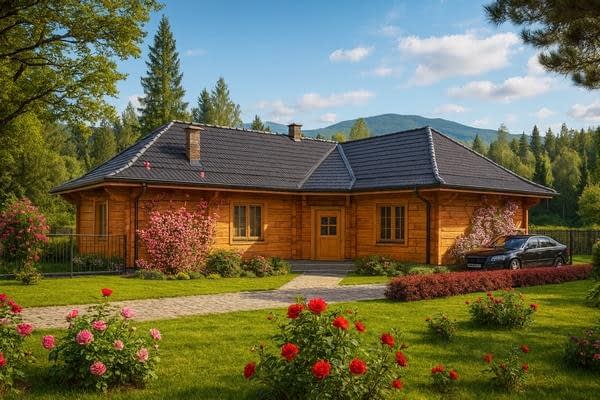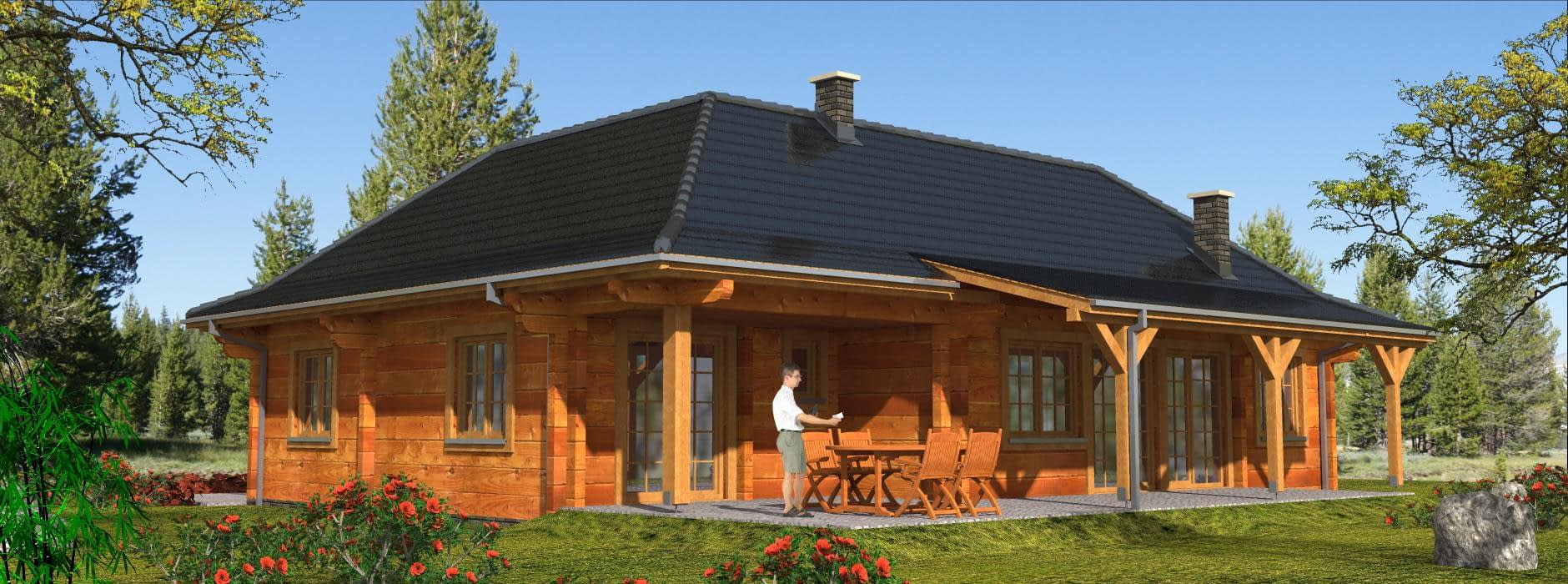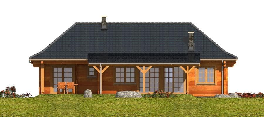 Projekt domu z bali A-113 „DOM OLCHOWA” – parterowy dom w stylu dworkowym. Dom z bali A-113 „DOM OLCHOWA” to propozycja dla osób ceniących połączenie tradycji z elegancją. Parterowy budynek jednorodzinny w kształcie litery L został zaprojektowany w klimacie polskiego dworku, a dzięki zastosowaniu naturalnych bali zyskał niepowtarzalny charakter i wyjątkowy mikroklimat wnętrza. Architektura i styl domu z bali Dom w kształcie litery L nawiązuje do klasycznej architektury dworskiej – symetrycznej i eleganckiej, a jednocześnie funkcjonalnej. Konstrukcja z bali podkreśla naturalne piękno drewna, Dwuspadowy dach nadaje bryle tradycyjnego wyglądu, Układ w kształcie litery L pozwala na stworzenie przytulnego ogrodu od strony tarasu. Układ pomieszczeń – przestrzeń dla całej rodziny Budynek został zaprojektowany jako parterowy, podpiwniczony, co pozwala na lepsze wykorzystanie przestrzeni: Parter: 5 pokoi, przestronny salon, wydzielona kuchnia w części dziennej, łazienki i pomieszczenia gospodarcze. Piwnica: dodatkowa przestrzeń użytkowa – idealna na kotłownię, spiżarnię lub domową siłownię. Atuty domu z bali A-113 „DOM OLCHOWA” Zdrowy mikroklimat – bale regulują wilgotność i zapewniają świeże powietrze. Energooszczędność – naturalne drewno gwarantuje świetną izolację cieplną. Elegancja i tradycja – architektura w stylu dworkowym nadaje domowi prestiżowego wyglądu. Funkcjonalność – 5 pokoi, kuchnia i piwnica zapewniają komfort nawet dużej rodzinie. Projekt domu z bali A-113 „DOM OLCHOWA” to idealna propozycja dla tych, którzy marzą o naturalnym, eleganckim i przestronnym domu w stylu dworkowym. To inwestycja łącząca tradycję polskiej architektury z zaletami budownictwa drewnianego.Rzuty
