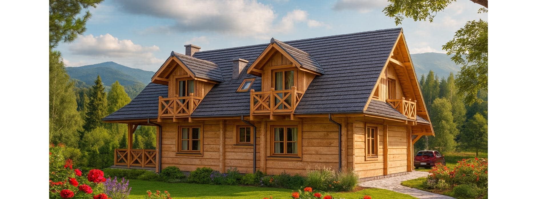 Projekt domu z bali A-124 „DOM GRABOWA” – naturalny klimat i góralska tradycja. A-124 „DOM GRABOWA” w technologii bali to projekt, który przenosi klimat tradycyjnych domów beskidzkich w nowoczesne czasy. To dom parterowy z poddaszem użytkowym, niepodpiwniczony, zaprojektowany dla osób, które marzą o życiu w otoczeniu naturalnego drewna i ciepła, jakie daje ta technologia. Architektura domu z bali Budynek nawiązuje do stylu góralskiego, ale dzięki zastosowaniu naturalnych bali zyskuje niepowtarzalny wygląd i mikroklimat wnętrza. Drewno zapewnia doskonałą izolację cieplną, zdrowe powietrze i wyjątkową estetykę elewacji. Układ pomieszczeń: Parter – strefa dzienna: przestronny salon z kominkiem i otwartą klatką schodową, duża kuchnia z możliwością wydzielenia części jadalnej, łazienka, dodatkowa sypialnia oraz pomieszczenie gospodarcze. Poddasze – przestrzeń prywatna: cztery wygodne sypialnie, obszerna łazienka, hall, który można zaaranżować jako miejsce do pracy lub zabawy dla dzieci. Atuty domu z bali A-124 naturalny mikroklimat sprzyjający zdrowiu, energooszczędność i świetna izolacja termiczna, niepowtarzalny, góralski charakter, funkcjonalny układ – 6 pokoi i przestronna kuchnia. Dom z bali A-124 „DOM GRABOWA” to harmonia tradycji i nowoczesności. Idealny wybór dla rodzin marzących o domu w naturalnym stylu, który będzie zarówno przytulny, jak i funkcjonalny.Rzuty
