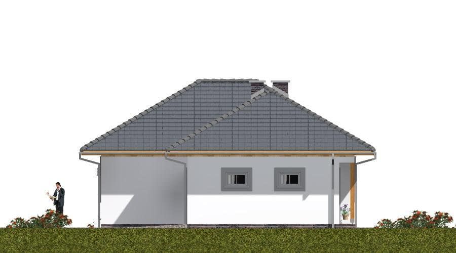 Projekt domu szkieletowego A-126 „DOM LILIOWA” – nowoczesność i oszczędność. A-126 „DOM LILIOWA” w technologii szkieletowej to idealne rozwiązanie dla osób, które poszukują niedużego, taniego w budowie i użytkowaniu domu jednorodzinnego. Dzięki prostej konstrukcji i lekkiej technologii drewnianej, dom można wznieść szybko i bez zbędnych formalności. Architektura domu szkieletowego: Projekt wyróżnia się prostą, zwartą bryłą, przykrytą dwuspadowym dachem. Technologia szkieletowa sprawia, że dom jest energooszczędny, lekki i nowoczesny, a jednocześnie tani w realizacji. Bryła budynku wpisuje się w nurt minimalistycznej architektury i dobrze komponuje się zarówno w otoczeniu miejskim, jak i podmiejskim. Układ pomieszczeń – prostota i wygoda. Na parterze zaprojektowano: jasny salon z kominkiem i aneksem kuchennym, dwie przytulne sypialnie, dużą łazienkę, jednostanowiskowy garaż, pomieszczenie gospodarcze z piecem c.o. Dzięki powierzchni zabudowy poniżej 70 m², budowę można zrealizować na zgłoszenie – bez kierownika budowy i prowadzenia dziennika. To sprawia, że projekt jest jeszcze bardziej ekonomiczny i dostępny dla inwestorów. Zalety domu szkieletowego A-126 „DOM LILIOWA”: Niskie koszty budowy i eksploatacji, Szybki czas realizacji inwestycji – technologia szkieletowa pozwala zakończyć budowę w kilka miesięcy, Nowoczesny design i prosty układ funkcjonalny, Możliwość budowy na zgłoszenie – mniej formalności i oszczędność czasu. Projekt domu szkieletowego A-126 „DOM LILIOWA” to doskonała propozycja dla osób szukających niewielkiego, taniego i funkcjonalnego domu jednorodzinnego. Idealny zarówno jako dom całoroczny, jak i dom letniskowy – ekonomiczny, wygodny i przyjazny w użytkowaniu.Rzuty