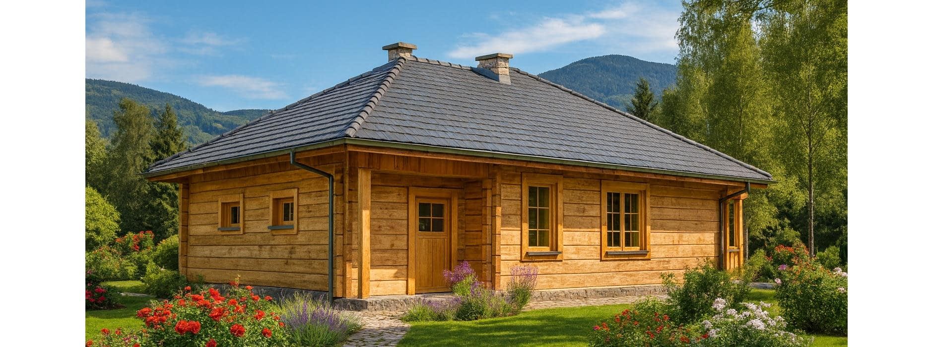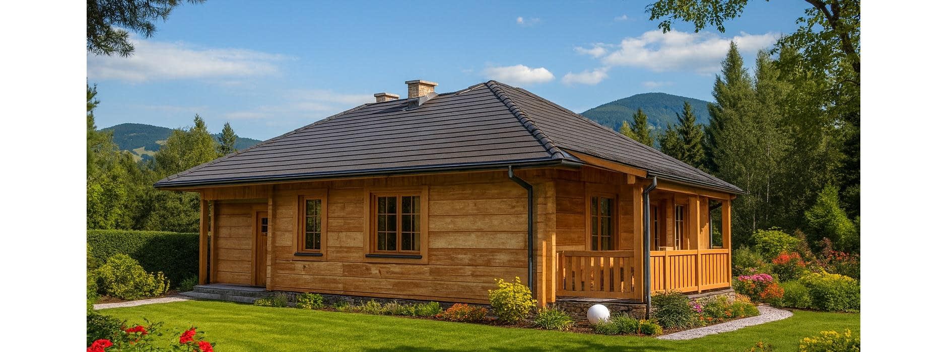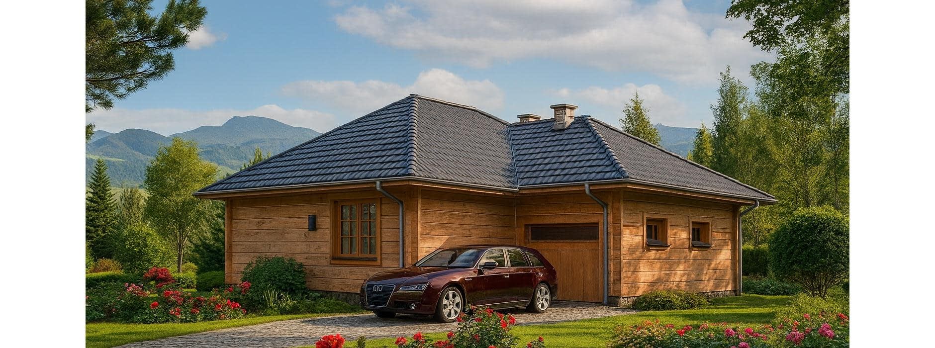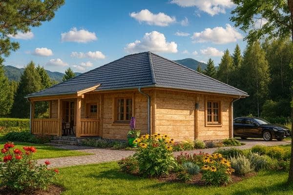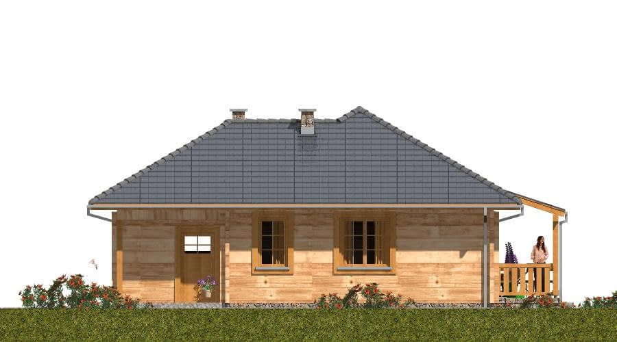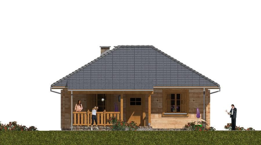 Projekt domu z bali A-126 „DOM LILIOWA” – tradycja i nowoczesna funkcjonalność. Projekt A-126 „DOM LILIOWA” to niewielki, ale niezwykle funkcjonalny dom jednorodzinny z bali, który idealnie sprawdzi się jako dom całoroczny lub letniskowy. Jego prosta forma, naturalne materiały i przemyślany układ wnętrz sprawiają, że jest to doskonała propozycja dla osób ceniących ekonomiczne i zdrowe budownictwo drewniane. Architektura i styl domu z bali: Budynek został zaprojektowany jako parterowy, niepodpiwniczony, z eleganckim dwuspadowym dachem i zwartą bryłą. Konstrukcja z bali zapewnia naturalny mikroklimat we wnętrzu, wysoką energooszczędność oraz wyjątkowy wygląd elewacji. Drewniane ściany nadają domowi przytulności i sprawiają, że doskonale komponuje się on zarówno z działką miejską, jak i w otoczeniu natury. Układ funkcjonalny – wygoda dla rodziny Na parterze zaplanowano: przestronny pokój dzienny z kominkiem, pełniący rolę serca domu, dwie komfortowe sypialnie, funkcjonalny aneks kuchenny, dużą, wygodną łazienkę, jednostanowiskowy garaż. Powierzchnia zabudowy domu wynosi poniżej 70 m², co pozwala na budowę na zgłoszenie, bez konieczności prowadzenia dziennika budowy i zatrudniania kierownika. Dlaczego warto wybrać dom z bali A-126? Ekonomia budowy i użytkowania – niski koszt realizacji oraz oszczędności w ogrzewaniu. Naturalny mikroklimat – drewno tworzy zdrowe warunki do życia. Przytulność i estetyka – elewacja z bali wyróżnia dom na tle typowych projektów. Prosta budowa – możliwość realizacji inwestycji na zgłoszenie. Dom z bali A-126 „DOM LILIOWA” to projekt, który łączy urok tradycji z nowoczesną funkcjonalnością. Dzięki niewielkim rozmiarom i przemyślanemu układowi wnętrz jest to doskonały wybór dla małej rodziny lub pary, która marzy o własnym domu w naturalnym stylu.Rzuty