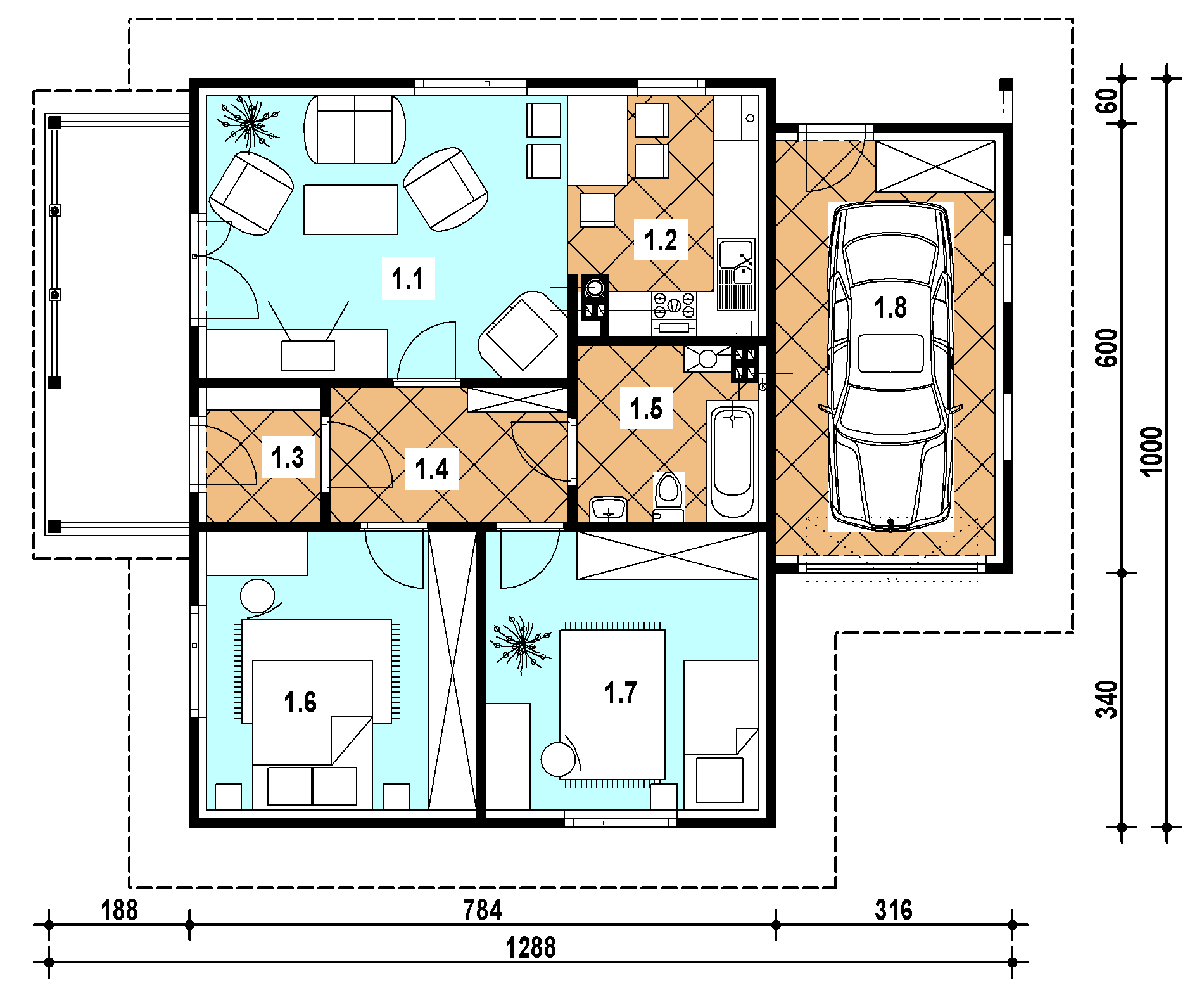 - Minimalne wymiary działki18 x 23m