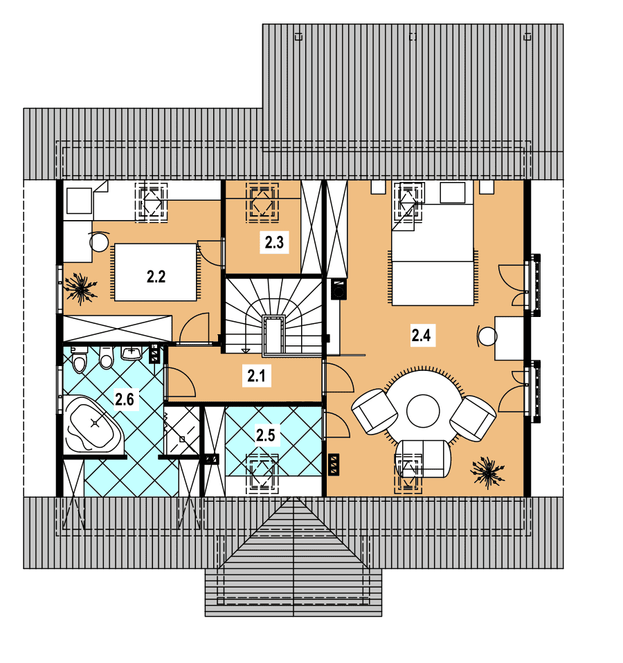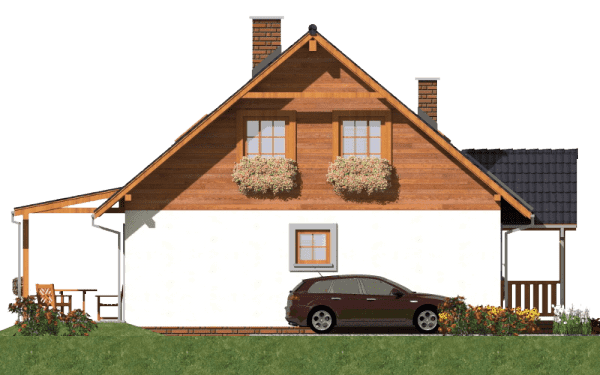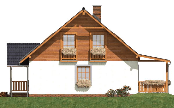 Projekt domu szkieletowego A-127 „DOM JAWOROWA” – funkcjonalność i nowoczesny styl Projekt A-127 „DOM JAWOROWA” w technologii szkieletowej to nowoczesna i praktyczna propozycja dla rodzin poszukujących ekonomicznego domu z poddaszem użytkowym. Został zaprojektowany z myślą o komforcie mieszkańców i szybkim czasie realizacji inwestycji. Architektura domu szkieletowego: Dom posiada prostą bryłę z dwuspadowym dachem, która nadaje mu klasycznego, eleganckiego wyglądu. Zastosowanie technologii szkieletowej sprawia, że budowa jest szybka, a sam budynek lekki i energooszczędny. Projekt sprawdzi się zarówno na małych działkach w mieście, jak i w spokojnych, podmiejskich lokalizacjach. Układ pomieszczeń – wygodny i praktyczny Funkcjonalność wnętrza oparta została na logicznym podziale: Parter: pokój dzienny z kominkiem i wyjściem na taras, osobna kuchnia z miejscem na spiżarkę, mała sypialnia – idealna jako gabinet, garderoba, duża łazienka, wydzielona klatka schodowa. Poddasze użytkowe: duża sypialnia z własną garderobą, dodatkowa sypialnia z garderobą, duża łazienka z możliwością aranżacji na pokój kąpielowy. Atuty domu szkieletowego A-127 „DOM JAWOROWA”: Ekonomia budowy i użytkowania – niskie koszty inwestycji i eksploatacji. Szybkość realizacji – technologia szkieletowa pozwala zakończyć budowę w kilka miesięcy. Nowoczesny układ funkcjonalny – 4 pokoje, dwie garderoby i przestronne łazienki. Uniwersalność – projekt odpowiedni dla rodziny 3–5 osobowej. Projekt domu szkieletowego A-127 „DOM JAWOROWA” to idealne rozwiązanie dla osób, które chcą postawić na komfort, nowoczesny design i ekonomiczne użytkowanie. To dom o zwartej formie, ale bogatym wnętrzu, który świetnie sprawdzi się jako dom całoroczny.Rzuty