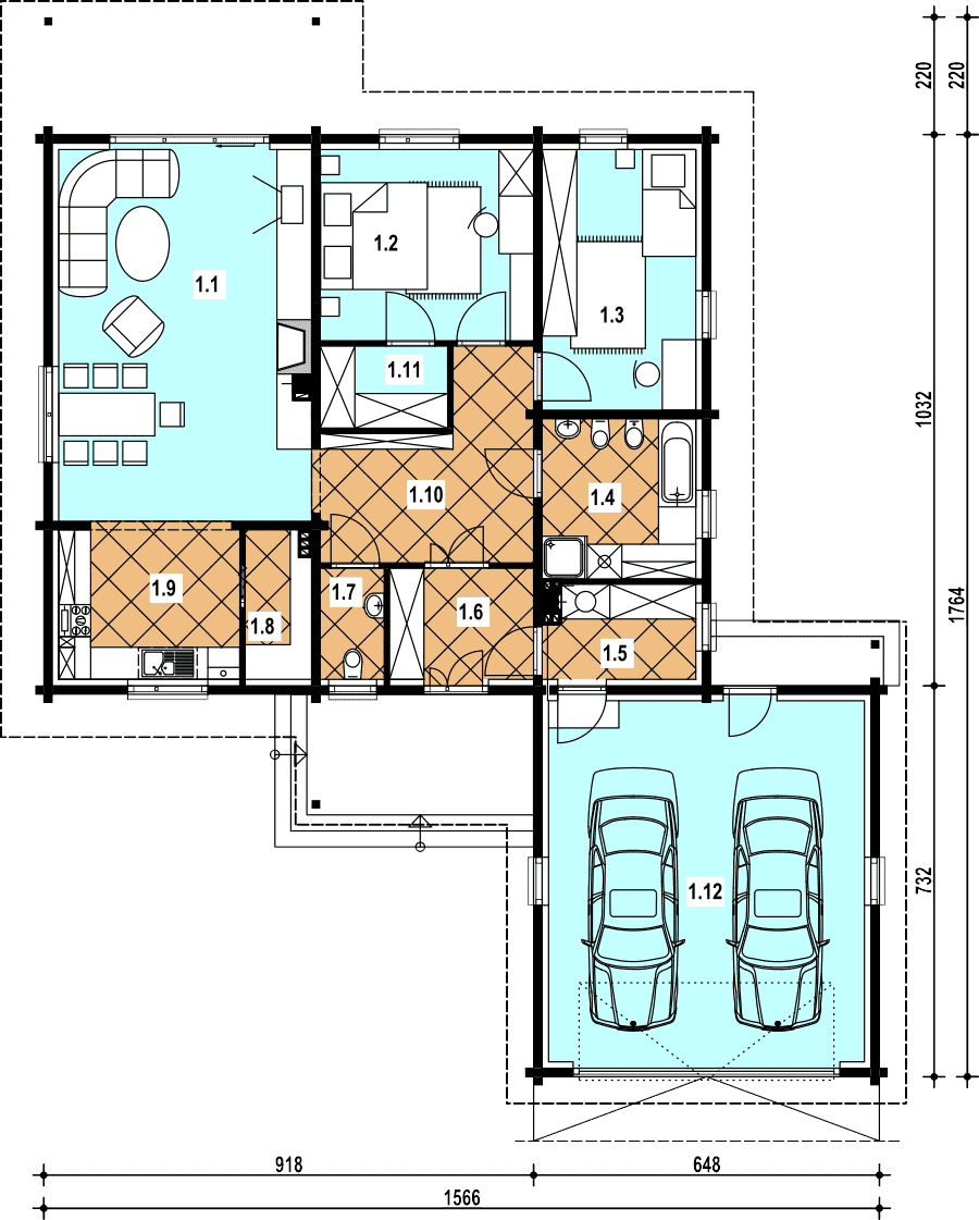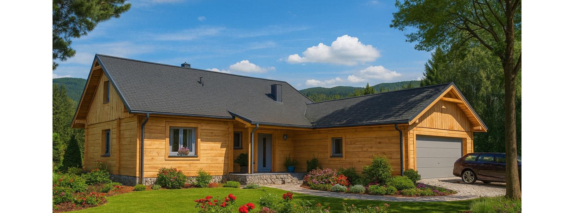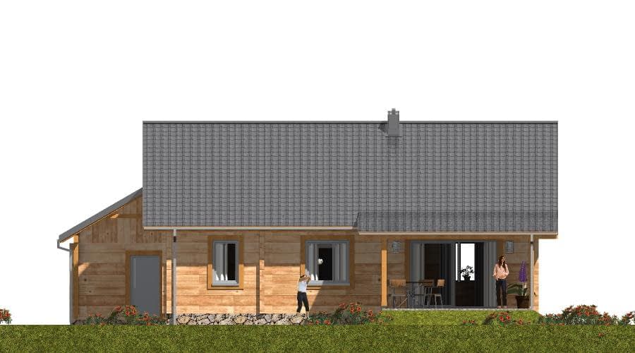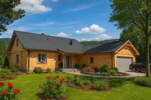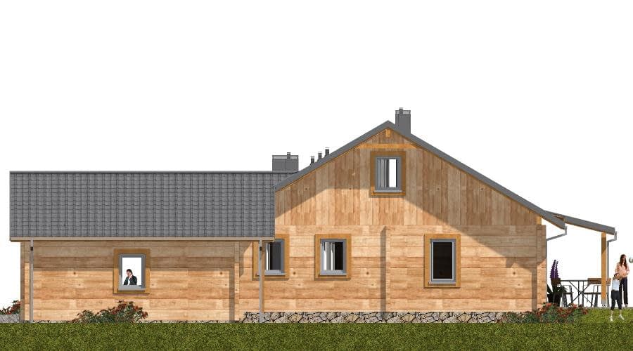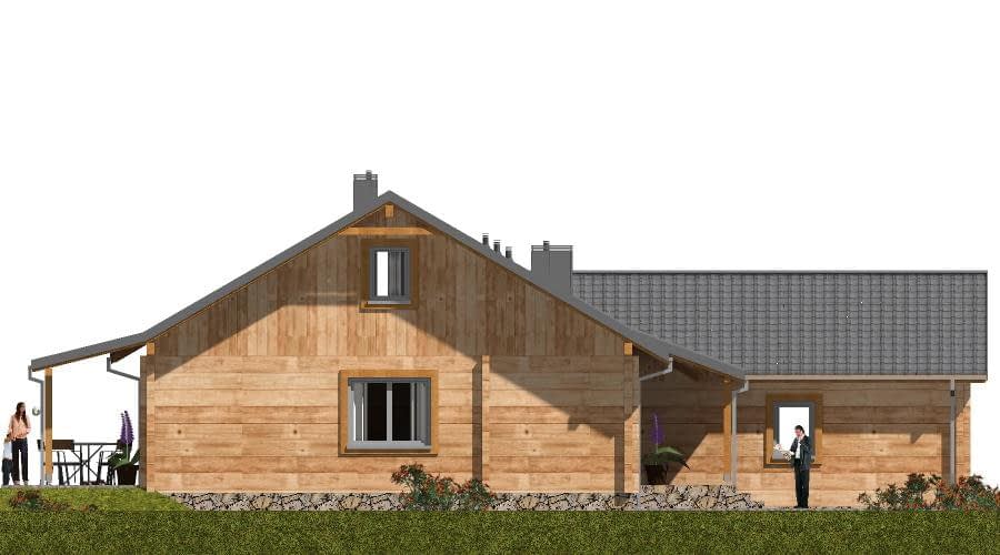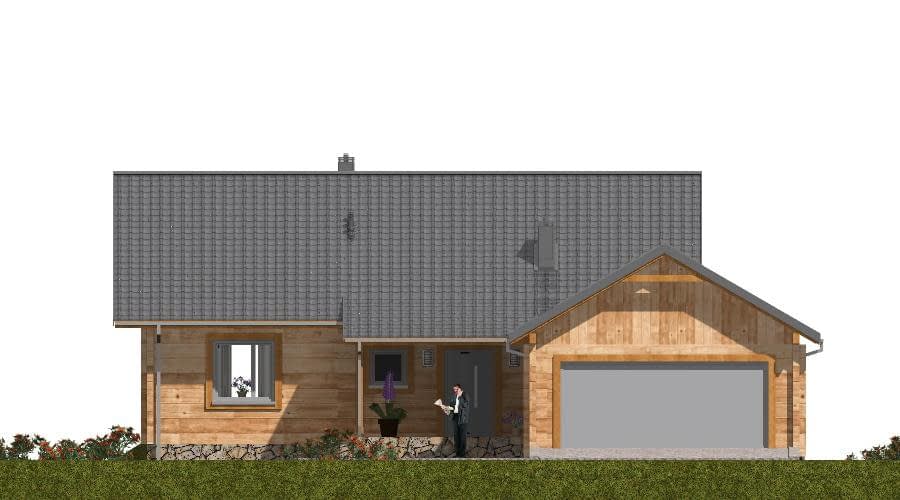 Projekt domu z bali A-128 „DOM KATOWICKA” – tradycja, komfort i naturalny klimat A-128 „DOM KATOWICKA” to projekt jednorodzinnego domu parterowego, w którym nowoczesne rozwiązania funkcjonalne spotykają się z tradycyjną technologią budowy z bali. Budynek został zaprojektowany z myślą o rodzinach, które cenią zdrowy mikroklimat, ciepło naturalnego drewna oraz komfort codziennego użytkowania. Architektura domu z bali – prostota i ponadczasowy styl Dom wyróżnia się dwuspadowym dachem o nachyleniu 30° i zwartą bryłą, co sprawia, że idealnie wpisuje się zarówno w krajobraz miejski, jak i podmiejski. Naturalna elewacja z bali nadaje budynkowi wyjątkowy charakter, a jednocześnie podkreśla jego solidność i trwałość. Przemyślany układ funkcjonalny Wnętrze domu zostało starannie zaprojektowane, aby zapewnić mieszkańcom maksymalny komfort: Strefa dzienna – przestronny pokój dzienny z kominkiem, jadalnią i wyjściem na taras, idealny do wspólnego spędzania czasu. Kuchnia z praktyczną spiżarką – dodatkowe miejsce na przechowywanie produktów i sprzętów. Strefa nocna – dwie sypialnie, w tym jedna z własną garderobą, co podnosi komfort użytkowania. Pomieszczenia dodatkowe – łazienka, osobne WC oraz pomieszczenie gospodarcze z piecem CO. Garaż – podwójny, z wygodnym przejściem przez część gospodarczą. Atuty domu z bali A-128 „DOM KATOWICKA” Naturalny mikroklimat – bale drewniane zapewniają zdrową atmosferę wewnątrz. Energooszczędność – drewno posiada doskonałe właściwości izolacyjne. Funkcjonalność – 3 pokoje, podwójny garaż i spiżarka sprawiają, że dom spełni oczekiwania 4-osobowej rodziny. Uniwersalny charakter – projekt sprawdzi się zarówno jako dom całoroczny, jak i dom letniskowy. Projekt domu z bali A-128 „DOM KATOWICKA” to propozycja dla osób, które chcą połączyć nowoczesną funkcjonalność z tradycyjną technologią drewna. To dom wygodny, przytulny i ponadczasowy – doskonały wybór dla rodzin, które pragną mieszkać w harmonii z naturą.Rzuty