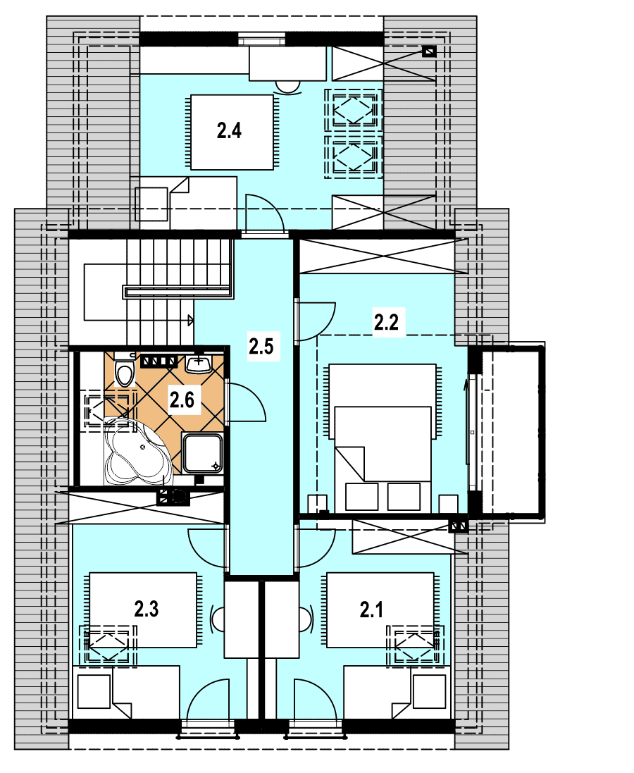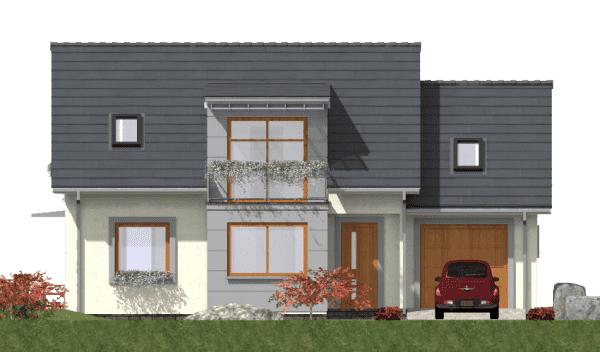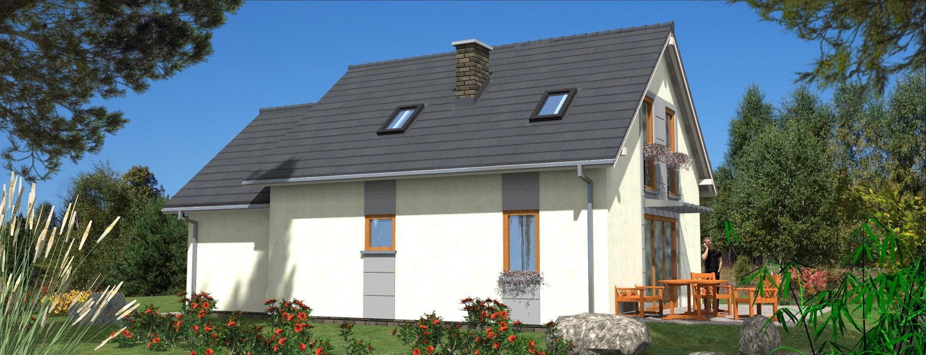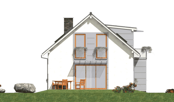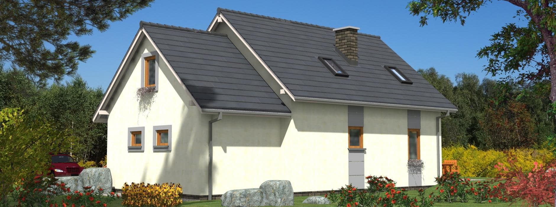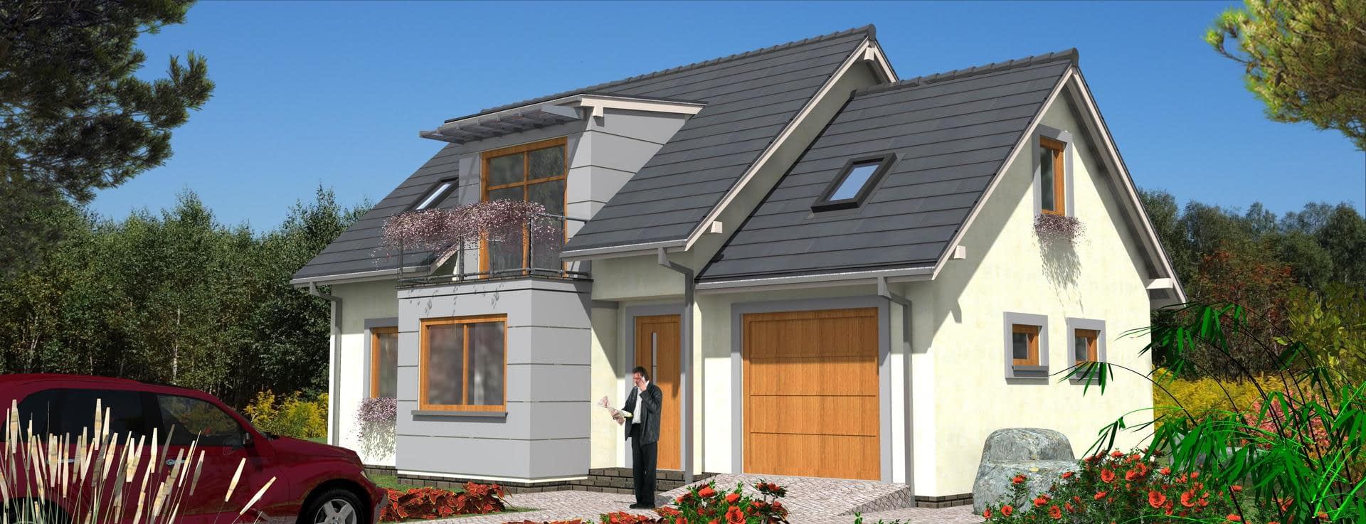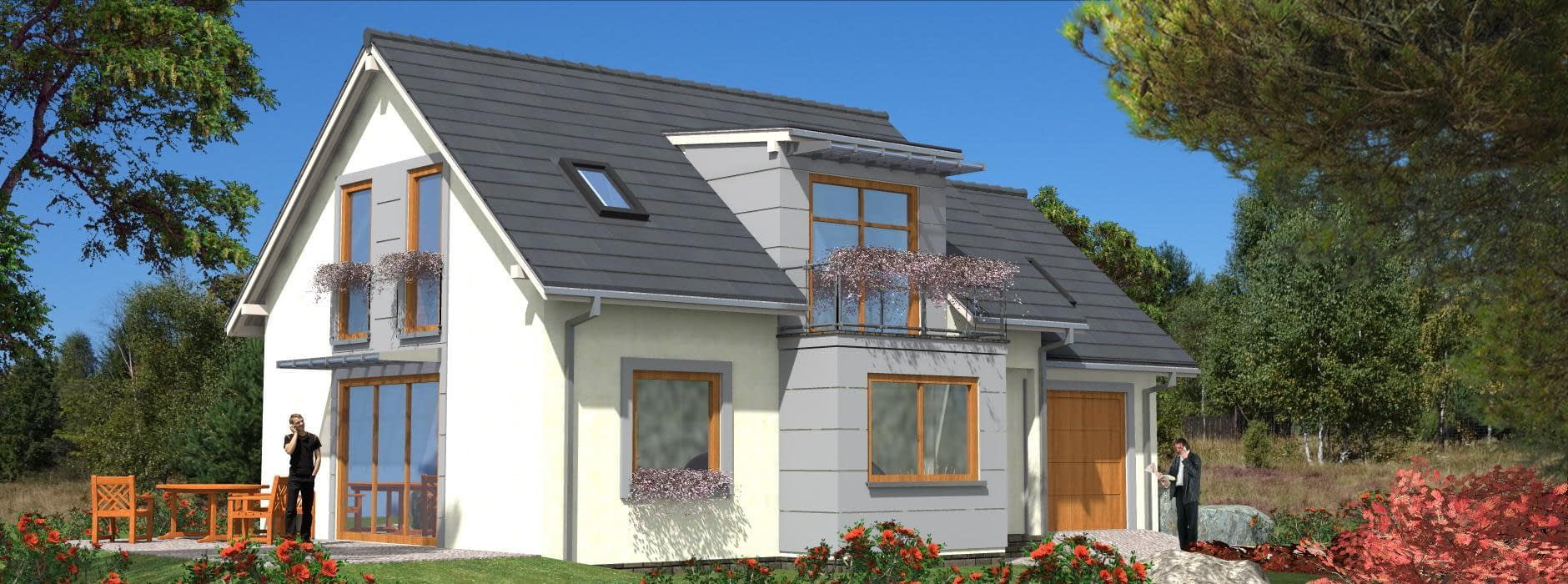 Projekt domu szkieletowego A-129 „DOM SPACEROWA” – nowoczesny dom dla wymagających Dom szkieletowy A-129 „DOM SPACEROWA” to nowoczesny projekt jednorodzinny, w którym funkcjonalność spotyka się z estetyką. Zaprojektowany z myślą o 4–5-osobowej rodzinie, oferuje przestronne wnętrza, szybki czas realizacji oraz niskie koszty eksploatacji. Architektura i styl domu szkieletowego Projekt wyróżnia się prostą, ale elegancką formą: nowoczesny dwuspadowy dach w kolorze antracytu, białe i szare tynki kontrastujące z drewnianymi elementami, szerokie przeszklenia i portfenetry, które wpuszczają do wnętrza naturalne światło. Wejście główne w podcieniu dodaje całości lekkości i prestiżu. Funkcjonalny układ wnętrza Parter – strefa wspólna i użytkowa salon powyżej 30 m² z kominkiem – idealne miejsce spotkań rodzinnych, kuchnia z jadalnią otwierającą się na pokój dzienny, łazienka, garaż oraz czysta kotłownia. Poddasze – strefa nocna cztery pokoje zaprojektowane z myślą o wygodzie, duża łazienka, która zaspokoi potrzeby wszystkich domowników. Atuty technologii szkieletowej Szybka budowa – realizacja nawet w kilka miesięcy. Energooszczędność – doskonała izolacja termiczna, niskie rachunki za ogrzewanie. Elastyczność – łatwe wprowadzanie zmian aranżacyjnych. Funkcjonalność – pięć pokoi, dwie łazienki i garaż to układ idealny dla rodziny. Projekt domu szkieletowego A-129 „DOM SPACEROWA” to doskonały wybór dla osób poszukujących nowoczesnego, ekonomicznego i komfortowego domu. To połączenie estetyki, funkcjonalności i nowoczesnej technologii, które zapewni rodzinie wygodę na lata.Rzuty