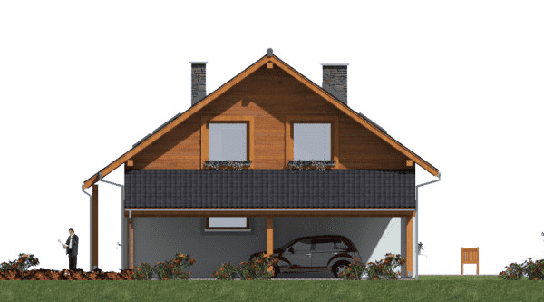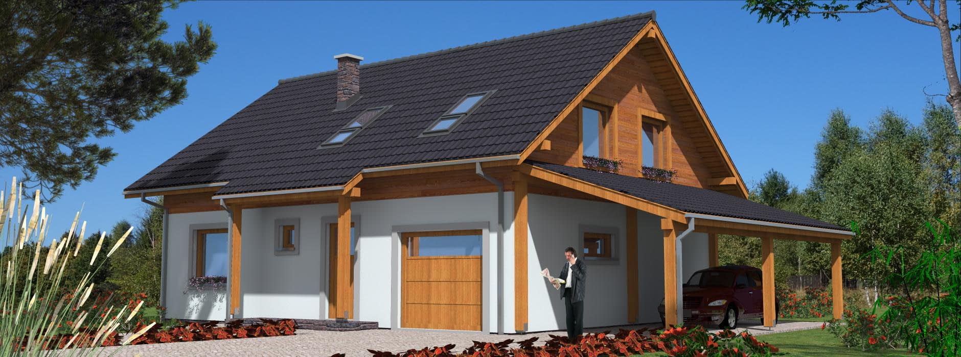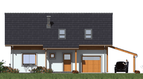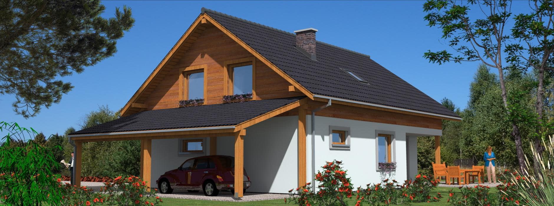 Ten parterowy dom szkieletowy z poddaszem użytkowym łączy funkcjonalność i nowoczesną technologię z przyjaznym, rodzinnym charakterem. Budynek jest niepodpiwniczony, co sprawia, że realizacja jest szybka i ekonomiczna. Układ wnętrza 4 pokoje, w tym przestronny pokój dzienny z kominkiem oraz trzy wygodne sypialnie, Kuchnia z aneksem jadalnym, umożliwiająca wygodne przygotowywanie posiłków i codzienną organizację życia domowego, Garaż i wiata do parkowania samochodów i przechowywania sprzętu, Poddasze użytkowe może służyć jako strefa nocna lub dodatkowa powierzchnia do pracy, hobby czy gościnna. Zalety technologii szkieletowej Szybki czas budowy i niższe koszty inwestycji, Lekka konstrukcja umożliwiająca łatwe dostosowanie wnętrza do potrzeb rodziny, Doskonała izolacja termiczna i akustyczna, co czyni dom komfortowym i energooszczędnym, Styl góralski lub nowoczesny, z możliwością dużych przeszkleń i tarasu, sprzyjających naturalnemu doświetleniu i kontaktowi z otoczeniem. Dodatkowe informacje Budynek może być użytkowany całorocznie lub sezonowo jako dom letniskowy, Ekonomiczne użytkowanie i niski koszt eksploatacji dzięki nowoczesnym materiałom i technologii szkieletowej, Możliwość indywidualnej aranżacji wnętrza i dodatkowych przestrzeni na poddaszu.Rzuty