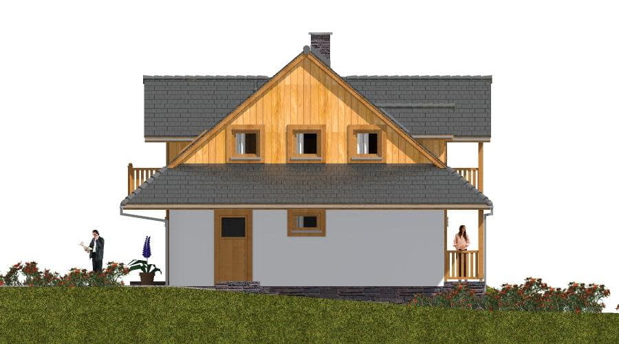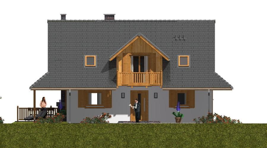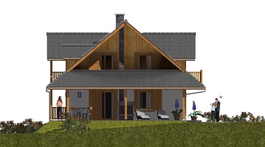 Ten parterowy dom szkieletowy z poddaszem użytkowym to propozycja dla osób ceniących nowoczesną i szybką budowę, przy zachowaniu wysokiej funkcjonalności. Budynek jest częściowo podpiwniczony, co daje dodatkowe miejsce na kotłownię, pralnię lub pomieszczenia gospodarcze. Układ wnętrza Dom posiada 5 pokoi, co zapewnia komfort mieszkania dla rodziny lub możliwość przeznaczenia niektórych pomieszczeń na biuro lub pokój gościnny, Kuchnia z aneksem jadalnym została zaprojektowana z myślą o wygodzie użytkowników i optymalnym zagospodarowaniu przestrzeni, Parter stanowi strefę dzienną, w której znajduje się przestronny pokój dzienny, z możliwością ustawienia kominka dla dodatkowego ciepła, Poddasze pełni funkcję strefy nocnej, zapewniając mieszkańcom prywatność i wygodę. Zalety technologii szkieletowej Szybki czas budowy i niski koszt inwestycji, Doskonała izolacja cieplna, co wpływa na niższe rachunki eksploatacyjne, Lekka konstrukcja, trwała i wytrzymała, Możliwość łatwej rozbudowy lub adaptacji wnętrza w przyszłości. Dodatkowe informacje Dom szkieletowy jest ciepły i ekonomiczny w użytkowaniu, Taras i duże okna zapewniają dostęp światła naturalnego i kontakt z otoczeniem, Piwnica i poddasze można zagospodarować w zależności od potrzeb rodziny.Rzuty