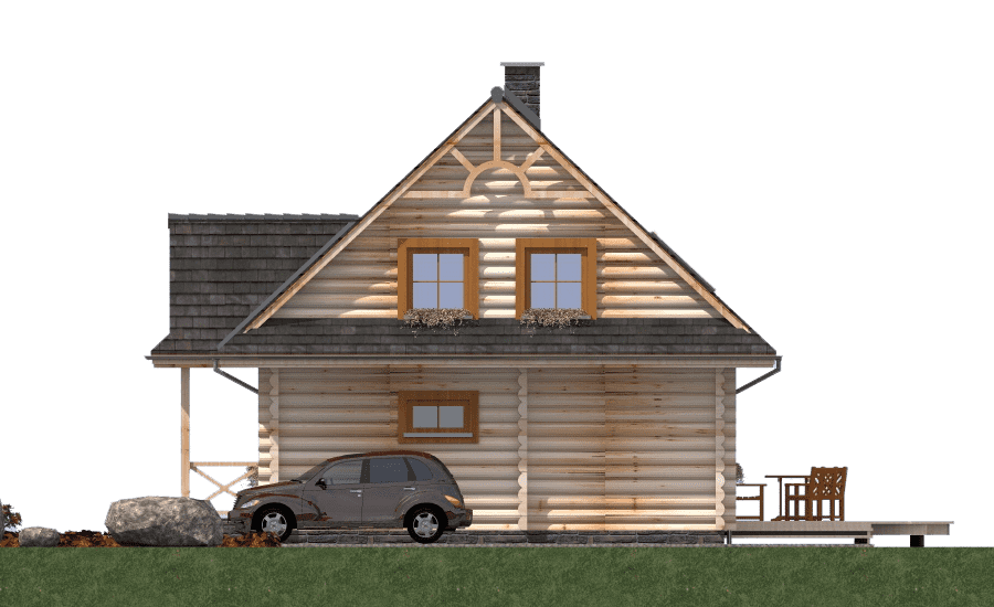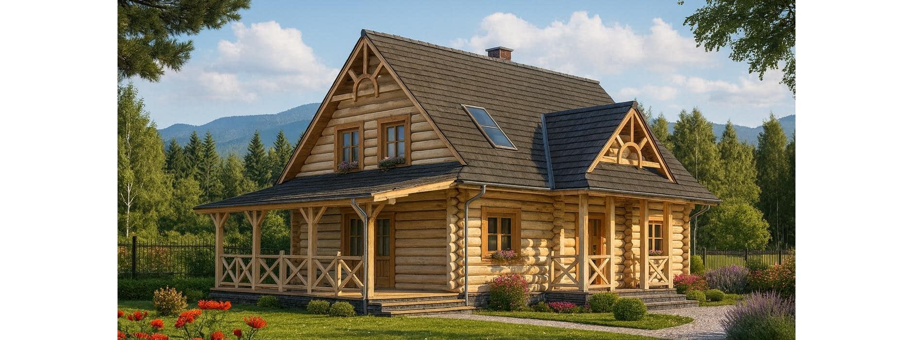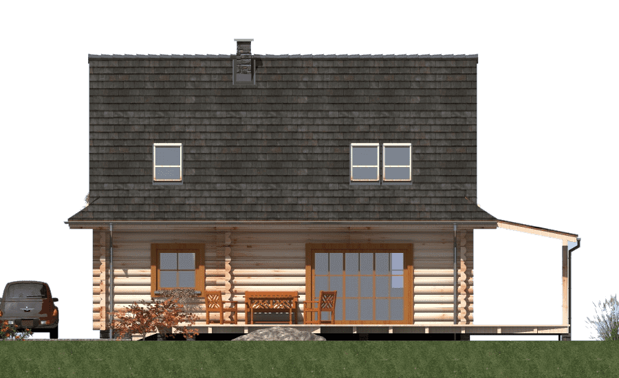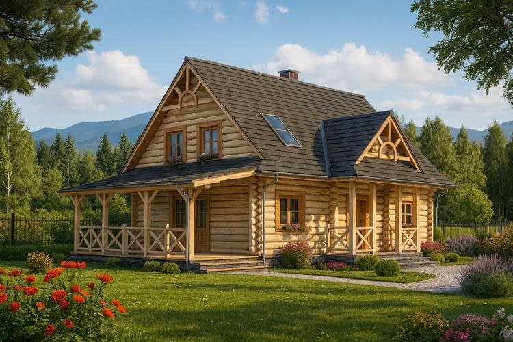 Projekt domu z bala inspirowanego architekturą górską to wyjątkowe połączenie tradycji z nowoczesnością. Charakterystyczna bryła budynku nawiązuje do regionalnego stylu, a jednocześnie została wzbogacona o elementy współczesne – duże przeszklenia, otwarty układ wnętrz i częściowo zadaszony taras, który pozwala cieszyć się ogrodem przez cały rok. Komfortowe wnętrza Wnętrze domu wyróżnia się niebanalnym i przestronnym układem. Parter to strefa dzienna, w której salon połączony z kuchnią i holem tworzy otwartą przestrzeń. Duże okna zapewniają maksymalną ilość naturalnego światła, a kominek nadaje wnętrzu przytulny klimat. Z salonu można wyjść na taras drewniany, częściowo zadaszony, idealny do odpoczynku niezależnie od pogody. Dodatkowo na parterze znajduje się sypialnia dla gości lub seniorów, łazienka i pomieszczenie gospodarcze. Na poddaszu przewidziano trzy wygodne sypialnie, łazienkę oraz niewielką garderobę. Wszystkie pomieszczenia łączy funkcjonalny hall. Atuty technologii z bala Dom wykonany w technologii z bala posiada unikalne właściwości: naturalne drewno zapewnia zdrowy i przyjazny mikroklimat, budynek jest ciepły zimą i chłodny latem, drewniana elewacja i konstrukcja podkreślają charakter górskiego domu, niepowtarzalna estetyka i trwałość konstrukcji sprawiają, że dom wyróżnia się na tle innych inwestycji. Ten dom z bala z poddaszem i tarasem to doskonały wybór zarówno jako całoroczny dom rodzinny, jak i stylowy dom letniskowy. Łączy w sobie piękno tradycji i wygodę nowoczesnych rozwiązań.Rzuty