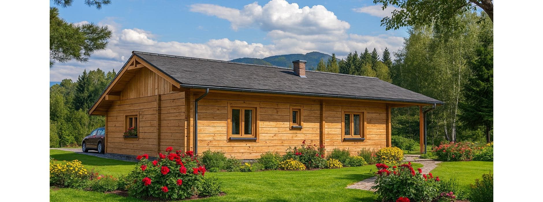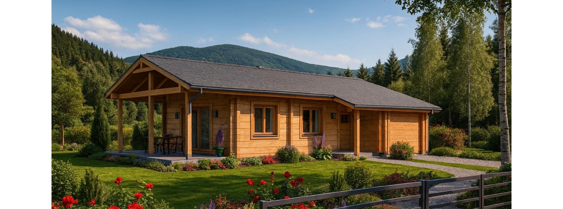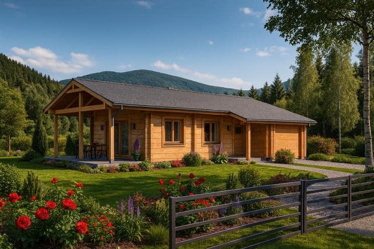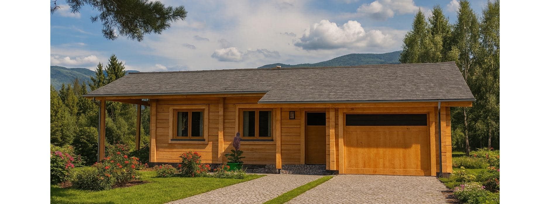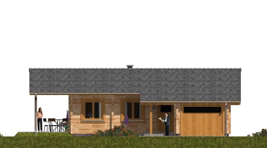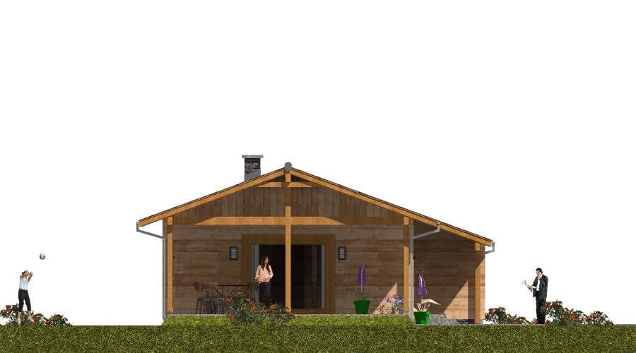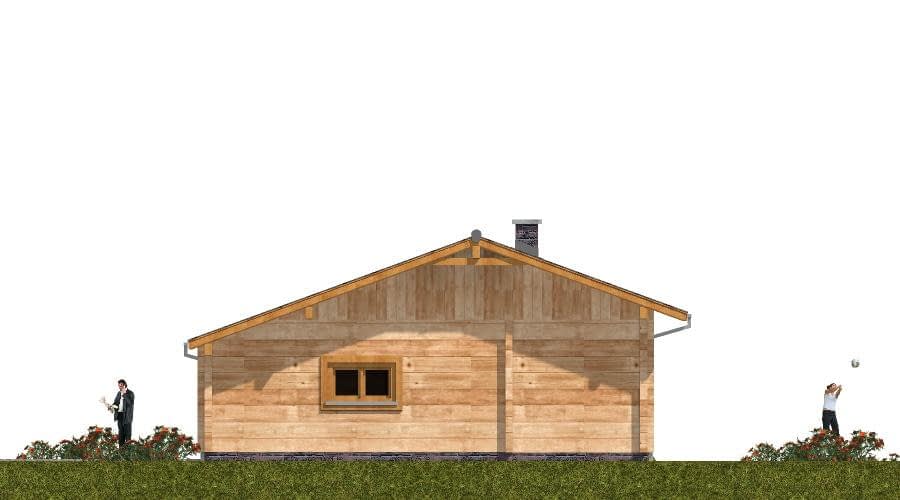 Projekt domu z bala to propozycja dla osób poszukujących tradycyjnego, drewnianego budownictwa o wyjątkowym klimacie. Budynek został zaprojektowany jako wolnostojący, parterowy, niepodpiwniczony, z dachem dwuspadowym o nachyleniu połaci 20°. Dzięki zastosowaniu naturalnych bali konstrukcja domu wyróżnia się ponadczasową estetyką, doskonałą izolacyjnością cieplną oraz niepowtarzalnym mikroklimatem wnętrz. Na parterze zaplanowano wygodny i funkcjonalny układ pomieszczeń. Wiatrołap prowadzi do hallu – głównej osi komunikacyjnej domu, z której dostępne są: kuchnia, przestronny pokój dzienny z kominkiem i wyjściem na taras, przytulna sypialnia, praktyczna łazienka. Salon z kominkiem oraz taras tworzą idealne miejsce do spędzania czasu z rodziną i przyjaciółmi, a naturalne drewno podkreśla przytulny, ciepły charakter wnętrza. Integralną częścią projektu jest garaż jednostanowiskowy, do którego można wejść bezpośrednio z wiatrołapu. To praktyczne rozwiązanie zapewnia wygodę i chroni przed niekorzystnymi warunkami pogodowymi. Dom z bala to inwestycja dla osób ceniących naturalne materiały, zdrowy mikroklimat i trwałość tradycyjnego budownictwa drewnianego. Sprawdzi się zarówno jako całoroczny dom rodzinny, jak i wyjątkowy dom letniskowy. W projekcie przewidziano także garaż dostępny bezpośrednio z wiatrołapu, co zwiększa komfort codziennego użytkowania domu.Rzuty