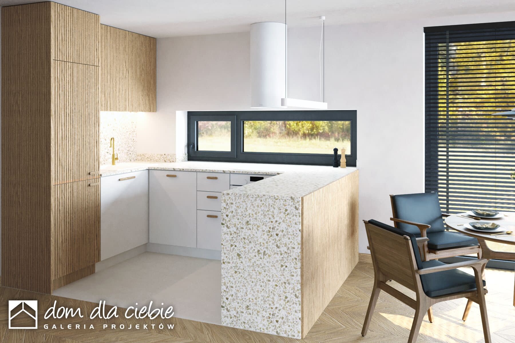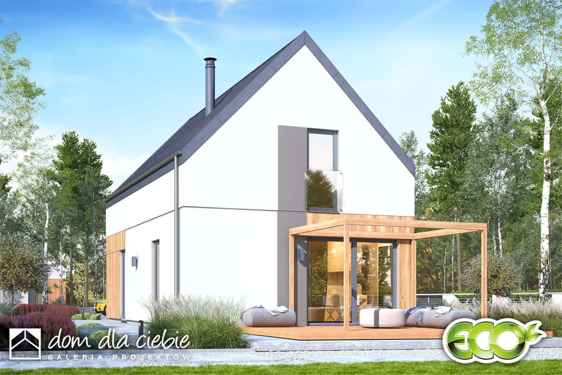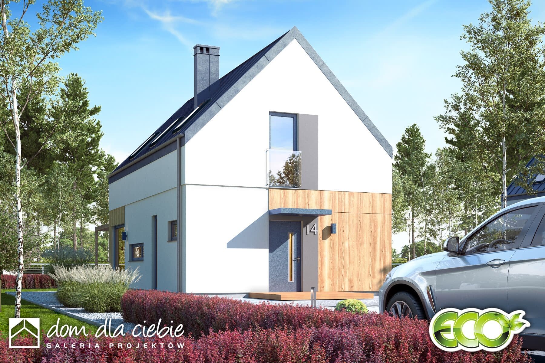 elewacje: tynk strukturalny, okładzina drewniana lub drewnopodobna