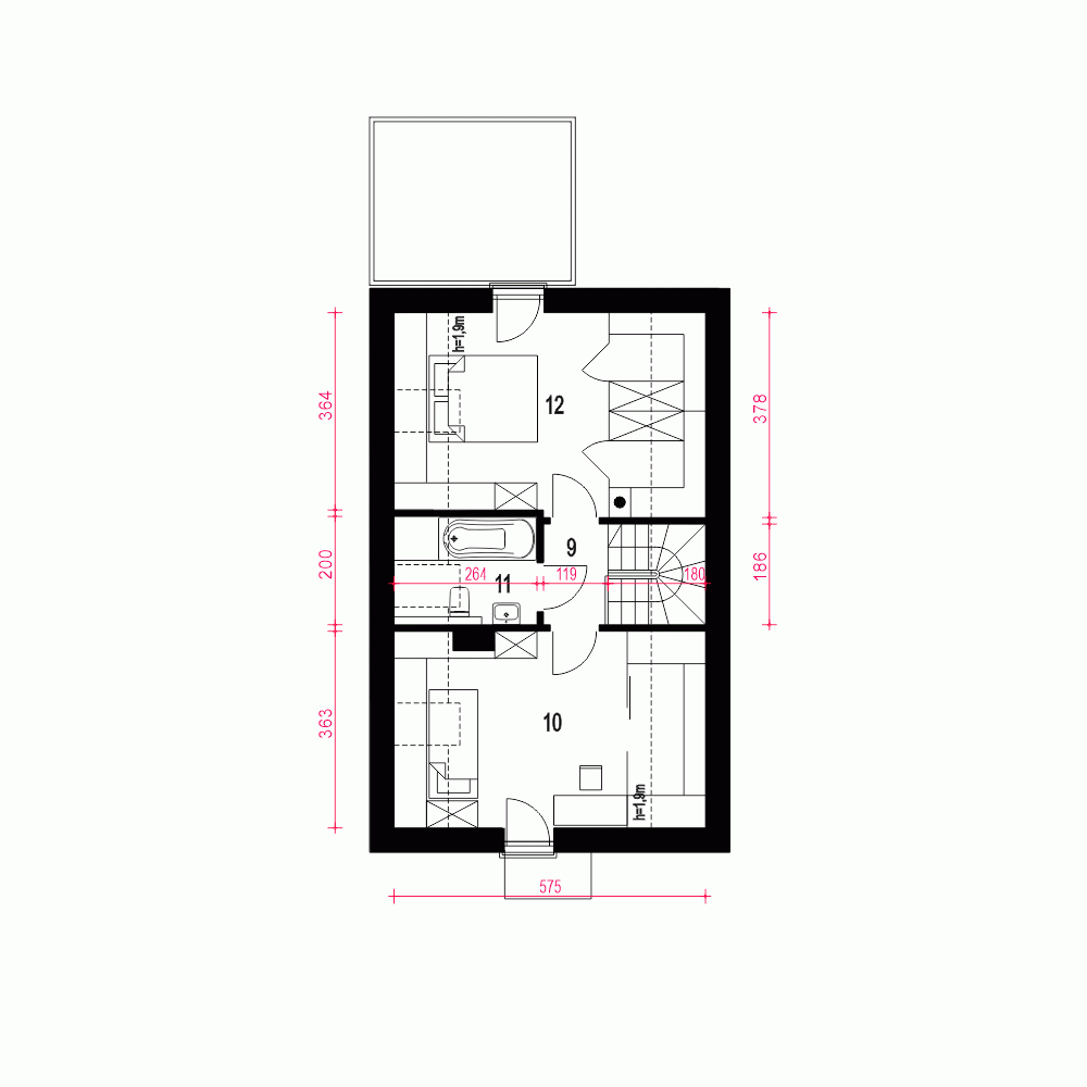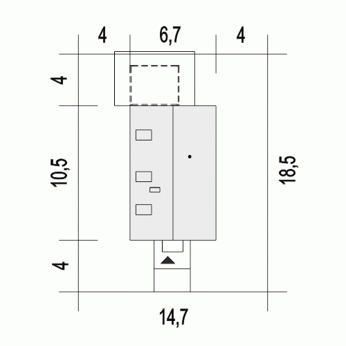 - Minimalne wymiary działki18.5 x 14.7m