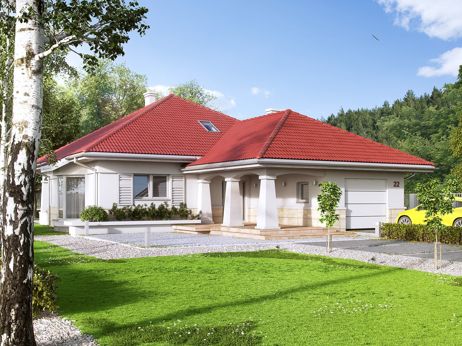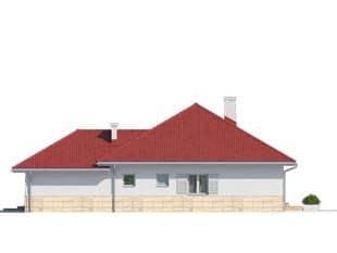 Jednorodzinny budynek mieszkalny, parterowy, niepodpiwniczony, z możliwością adaptacji poddasza na funkcje mieszkalne. Program użytkowy budynku zapewnia komfort mieszkania 3-osobowej rodzinie. Pomieszczenia jakie zaprojektowano w budynku, to: w części dziennej - salon, kuchnia połączona z jadalnią, spiżarnia; w części nocnej - dwie sypialnie, w tym jedna z garderobą i łazienka; w części gospodarczej - kotłownia i garaż.Konstrukcja