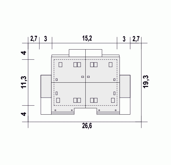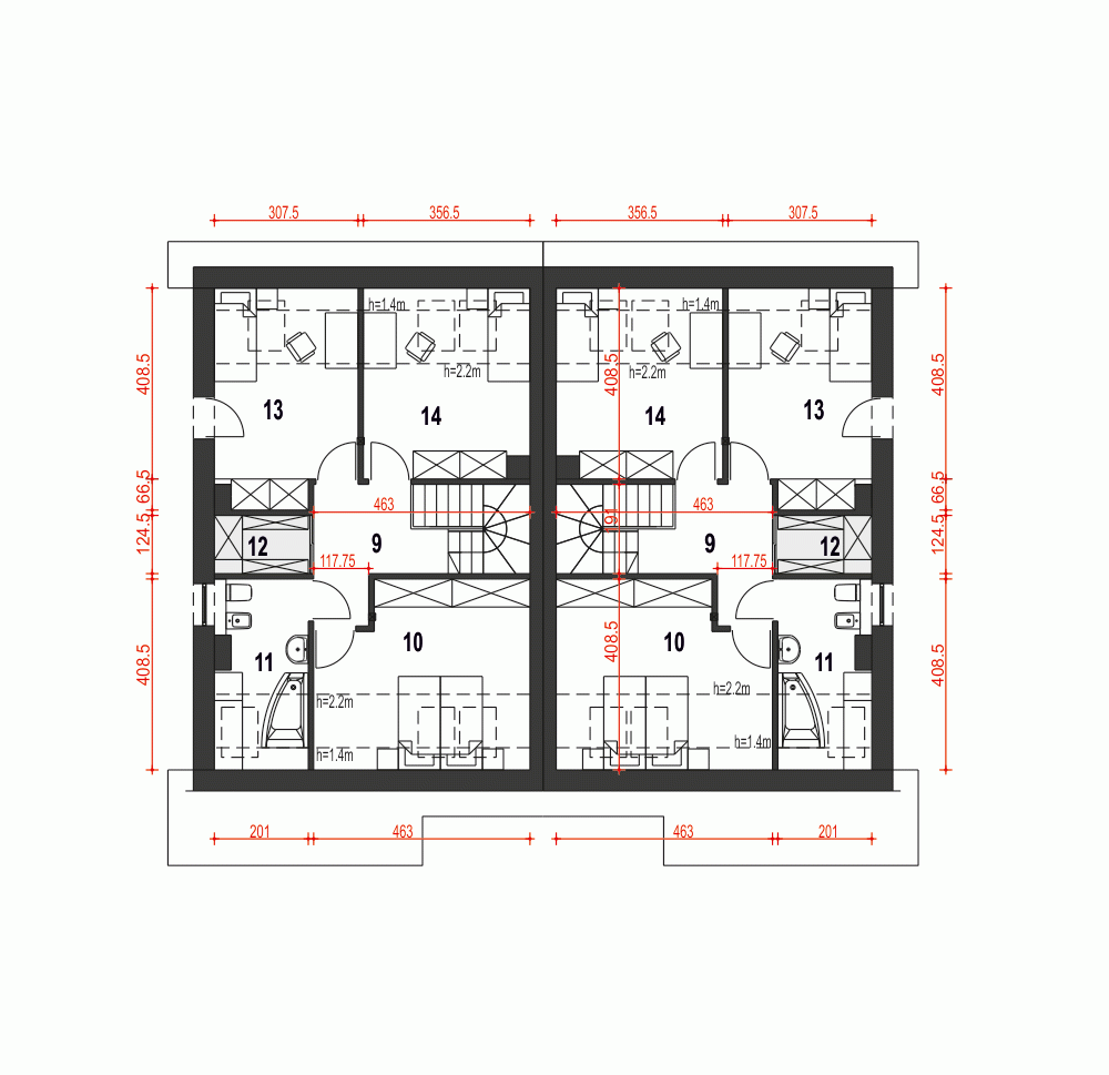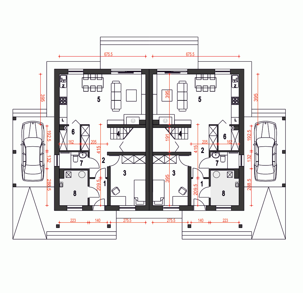 (Uwaga: projekty typu bliźniak oferujemy jako domy dwulokalowe, projekt można zamówić również w zabudowie bliźniaczej)Agat II A-BL2 to połączone dwa sementy od strony klatek schodowych. Projekt wpisuje się idealnie w ofertę budynków tanich i ekonomicznych w budowie i w eksploatacji, co udaje się osiągnąć poprzez optymalnie zaprojektowaną funkcję i zwartą bryłę.Opis poniżej dotyczy jednego segmentu.Agat II to dom nowoczesny i wygodny przeznaczony dla 4-5 osobowej rodziny. Strefa wejściowa do budynku przewiduje duży wiatrołap wyposażony w solidne szafy wnękowe z dostępem do pomieszczenia technicznego z piecem na paliwo stałe. Na parterze zaprojektowano jasny, praktyczny salon połączony z kuchnią , dodatkowy pokój,niewielką łazienkę oraz dużą spiżarnię a także garderobę wygospodarowaną w przestrzeni pod schodami. Na piętrze zaplanowano 3 sypialnie, garderobę oraz łazienkę. Projekt Agat II przeznaczony jest do zabudowy wolno stojącej ale również do zabudowy bliźniaczej i szeregowej. Może zostać zlokalizowany na małej i średniej działce.