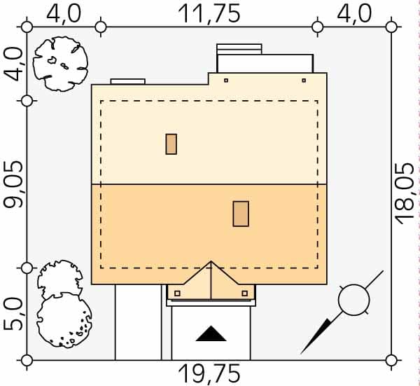 Ściany: 2-warstwowe - pustak ceramiczny + styropian, Stropy: żelbetowe, wylewane, Dach: dachówka ceramiczna CREATON,Rzuty