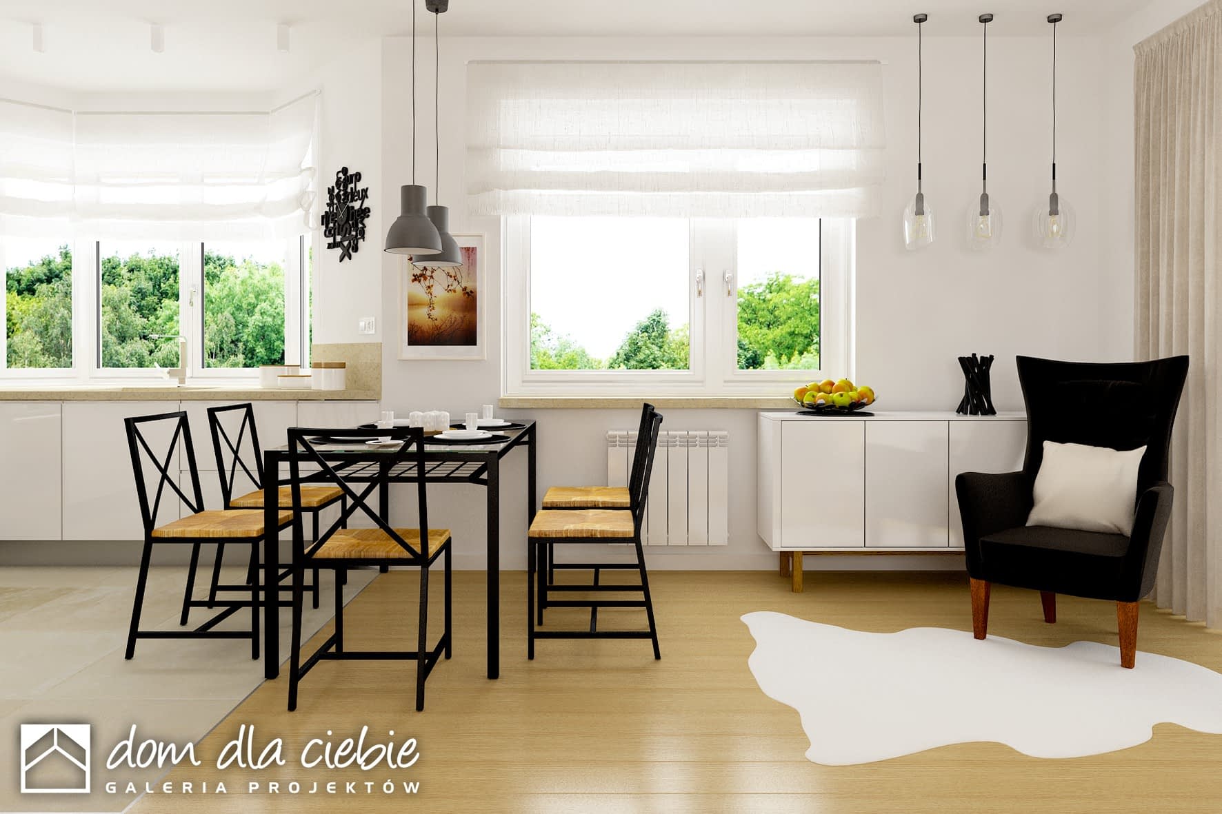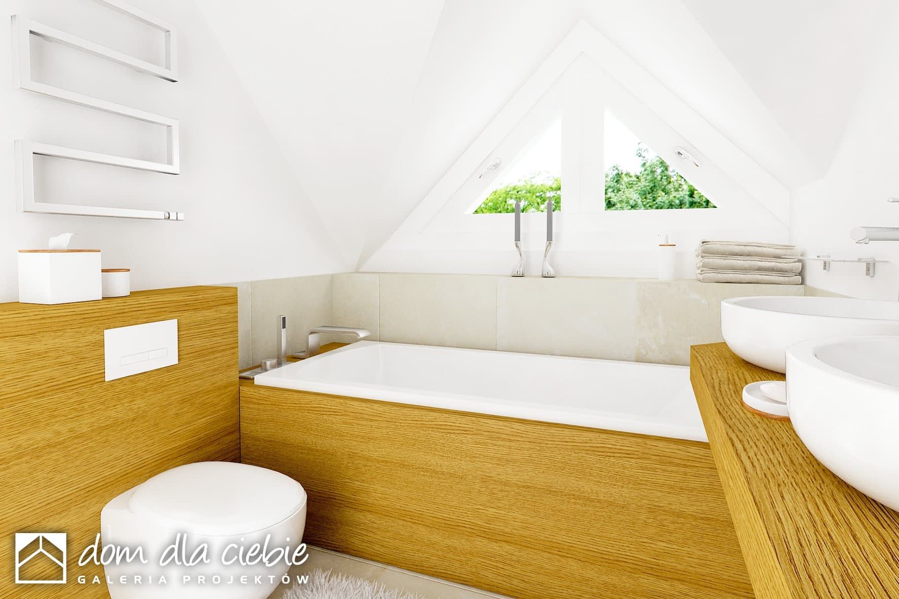 Agatka II z garażem jednostanowiskowym to powiększona wersja bardzo popularnego projektu małego domu naszego autorstwa - o nazwie Agatka. W stosunku do swojej poprzedniczki Agatka II posiada aż 5 pokoi mieszkalnych i proporcjonalnie większe pozostałe pomieszczenia. Pomimo zmian rozmiarów domu jest on nadal atrakcyjną propozycją dla osób szukających przytulnego i niedrogiego domu z poddaszem użytkowym dla 4 do 5-cio osobowej rodziny. Parter jako część ogólna obejmuje: doświetlony z trzech stron pokój dzienny z kominkiem oraz miejscem do spożywania posiłków, kuchnię, pokój sypialny - od strony ogrodowej, łazienkę oraz dostępną z wiatrołapu pralnię + c.o. z piecem na paliwo gazowe oraz przybudowany garaż. Poddasze to część prywatna, obejmująca: aż trzy sypialnie oraz wygodną wspólną łazienkę. Dodatkowo nad dobudowanym garażem przewidziano strych, dostępny z sypialni, który można wykorzystać jako kolejne pomieszczenie użytkowe. Budynek posiada oryginalny zewnętrzny kominek tarasowy od strony ogrodowej. Ten mały dom z powodzeniem może być wykorzystany jako rekreacyjny - całoroczny... Sprawdź inne projekty domów - Zapraszamy !