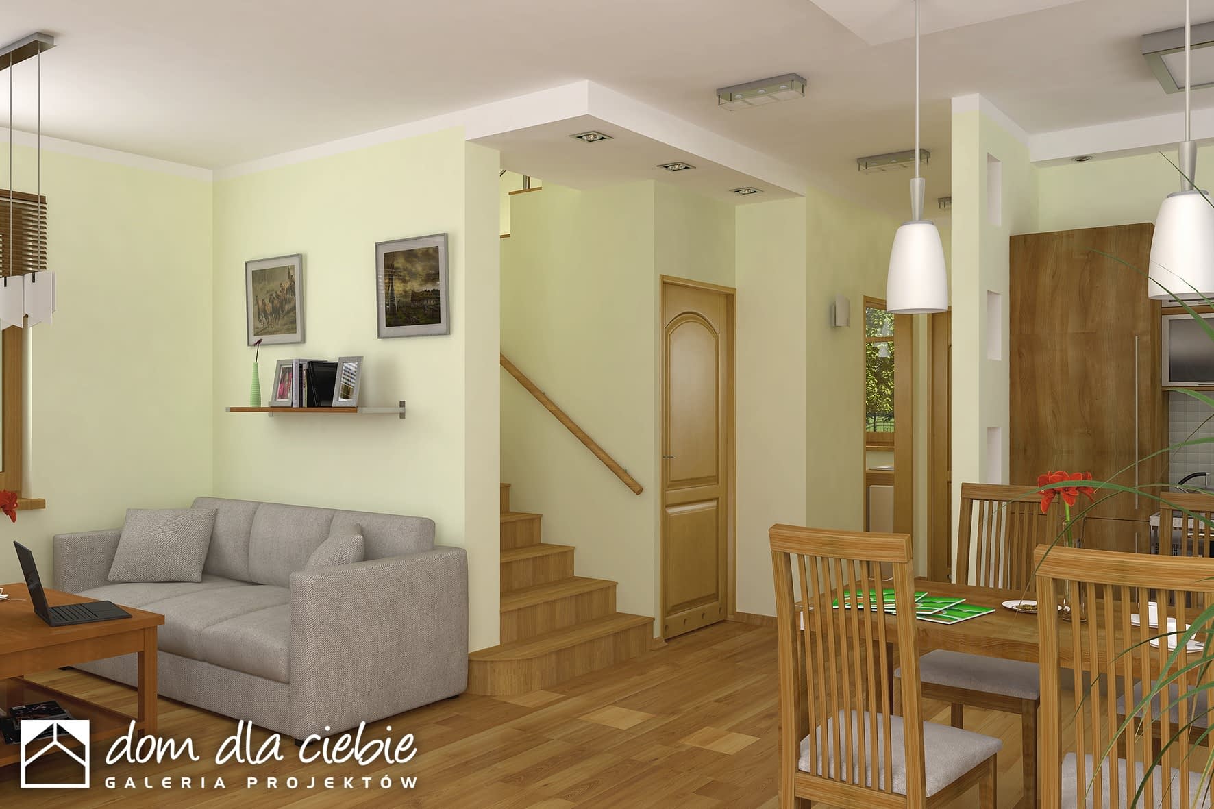 elewacje: tynk strukturalny, okładzina kamienna, okładzina drewniana