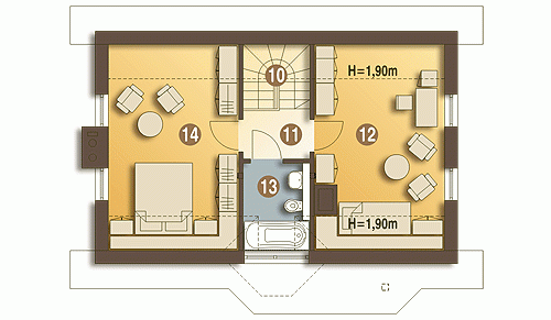 Agatka styl to sympatyczny, niewielki projekt małego domu piętrowego dla 3 do 4-ro osobowej rodziny. Parter jako część ogólna obejmuje: doświetlony z trzech stron pokój dzienny z kominkiem oraz miejscem do spożywania posiłków, kuchnię, pokój sypialny - od strony ogrodowej, wc oraz dostępną z wiatrołapu pralnię + c.o. Piętro to część prywatna, obejmująca: dwie sypialnie oraz wspólną łazienkę. Budynek posiada atrakcyjny zewnętrzny kominek od strony ogrodowej. Ten mały dom z powodzeniem może być wykorzystany jako rekreacyjny - całoroczny... Sprawdź inne projekty domów - Zapraszamy !