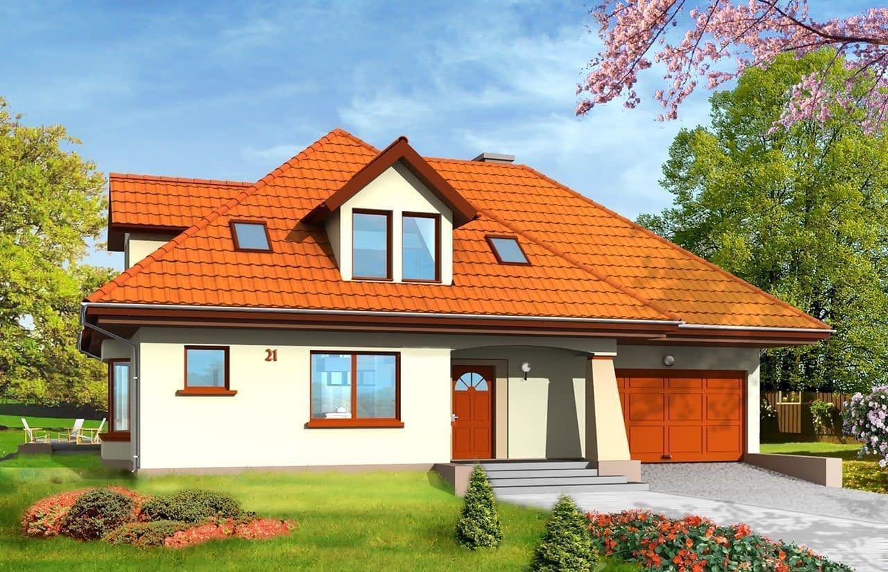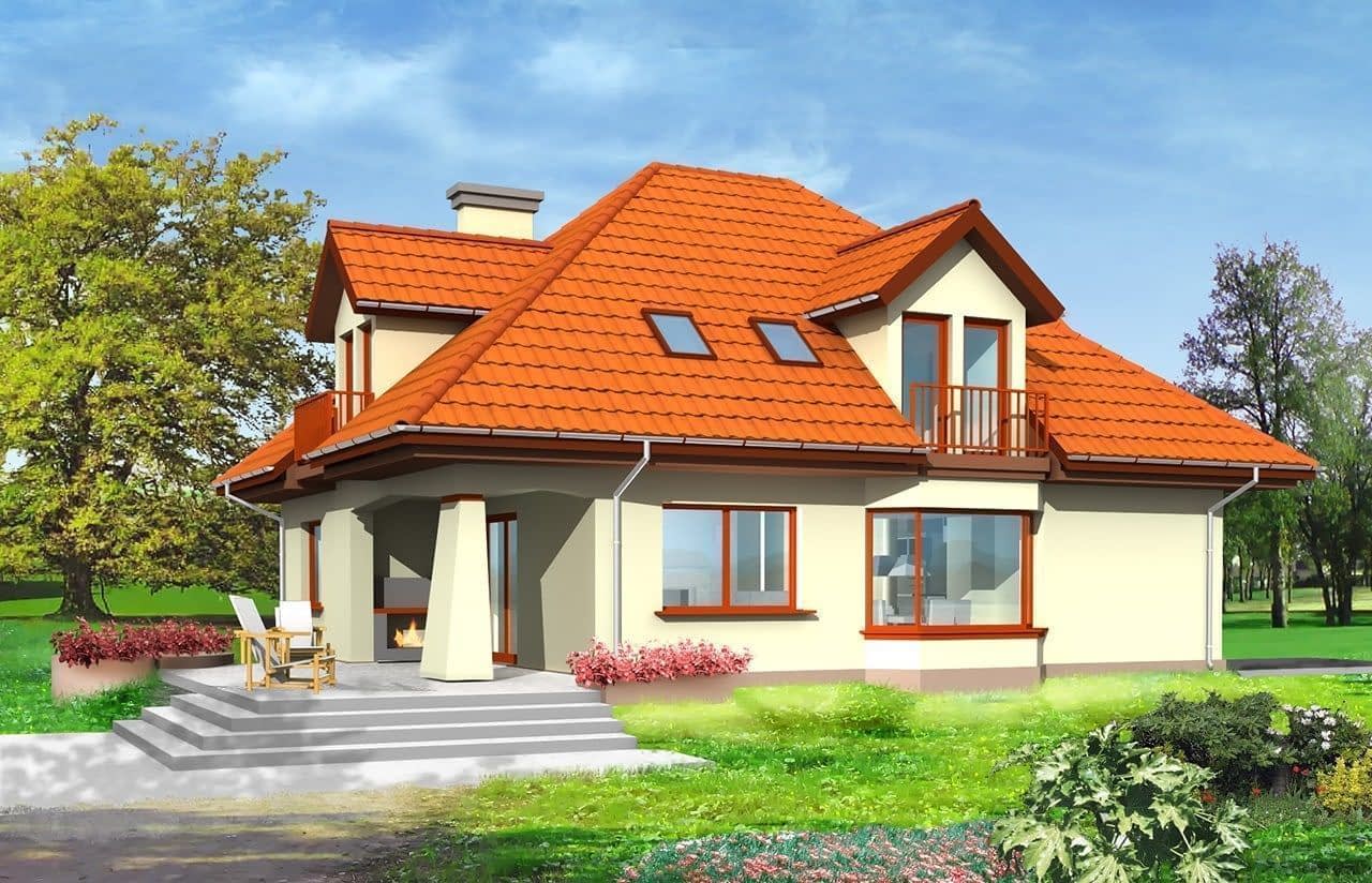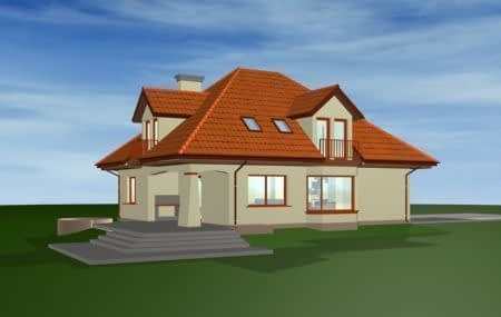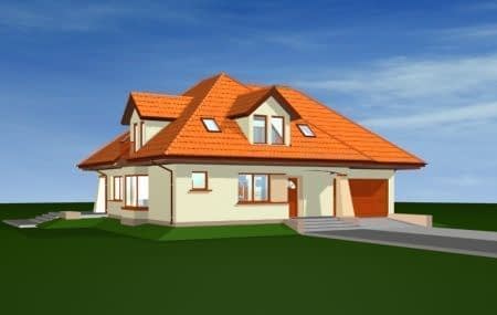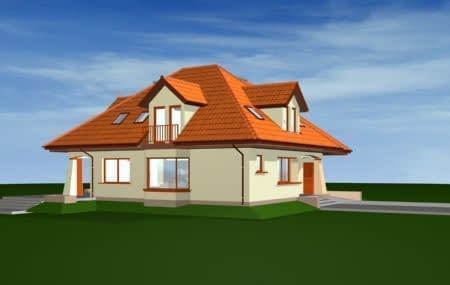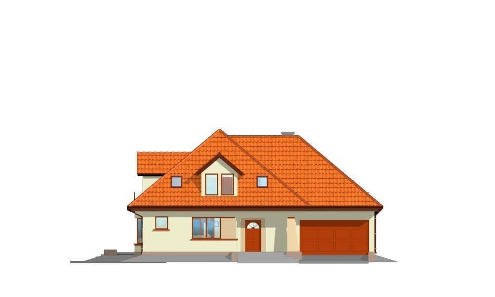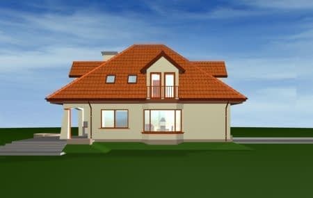 Projekt domu Agnieszka stworzony został z myślą o młodej rodzinie z dziećmi - atrakcyjny na zewnątrz, funkcjonalny w środku. Podcień wejściowy podparty kolumną z przyporą nadają wejściu reprezentacyjny wygląd. Okno wykuszowe z jadalni i podcień z kominkiem zewnętrznym ozdabiają dom od ogrodu. W projekcie Agnieszka zaplanowano wielospadowy dach z lukarnami i balkonami, dodatkowo urozmaicającymi bryłę budynku. Wnętrze domu charakteryzuje się obszernym salonem, dużym garażem i funkcjonalnymi sypialniami na poddaszu. Projekt domu Agnieszka dostępny jest także w wersji odbicia lustrzanego. Zapraszamy do zapoznania się z pełną ofertą pracowni MG Projekt: projekt domu Agnieszka 2, projekt domu Agnieszka 3, projekt domu Agnieszka 3 B