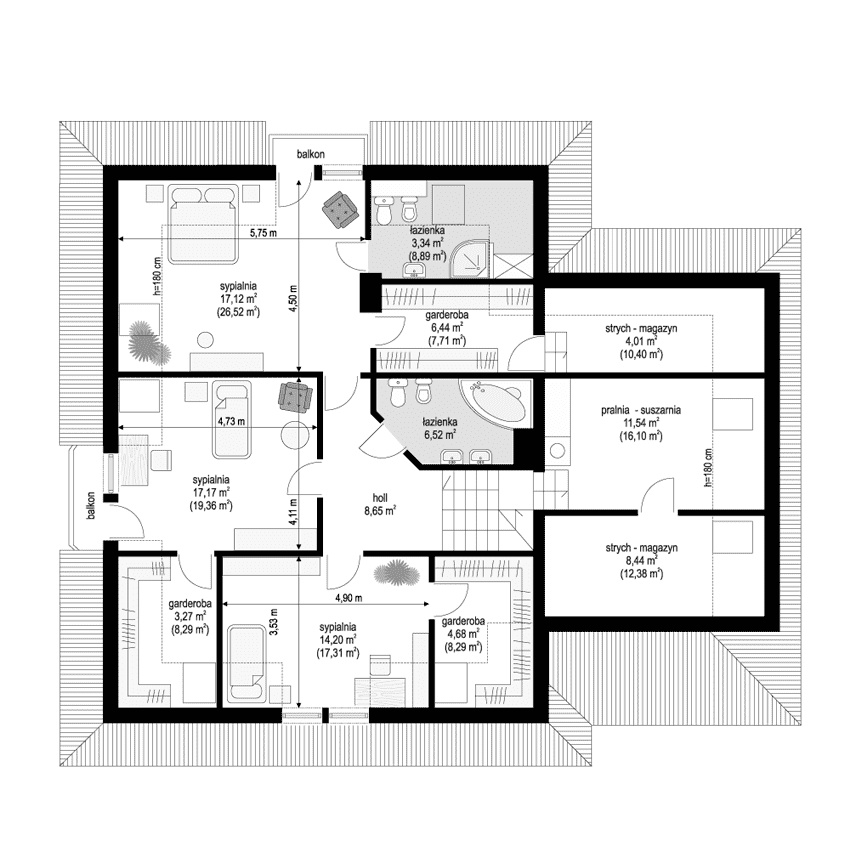 - Pokrycie dachublachodachówka lub dachówka ceramiczna
