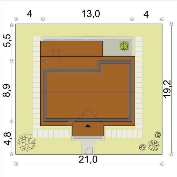 - Minimalne wymiary działki21 x 19.2m