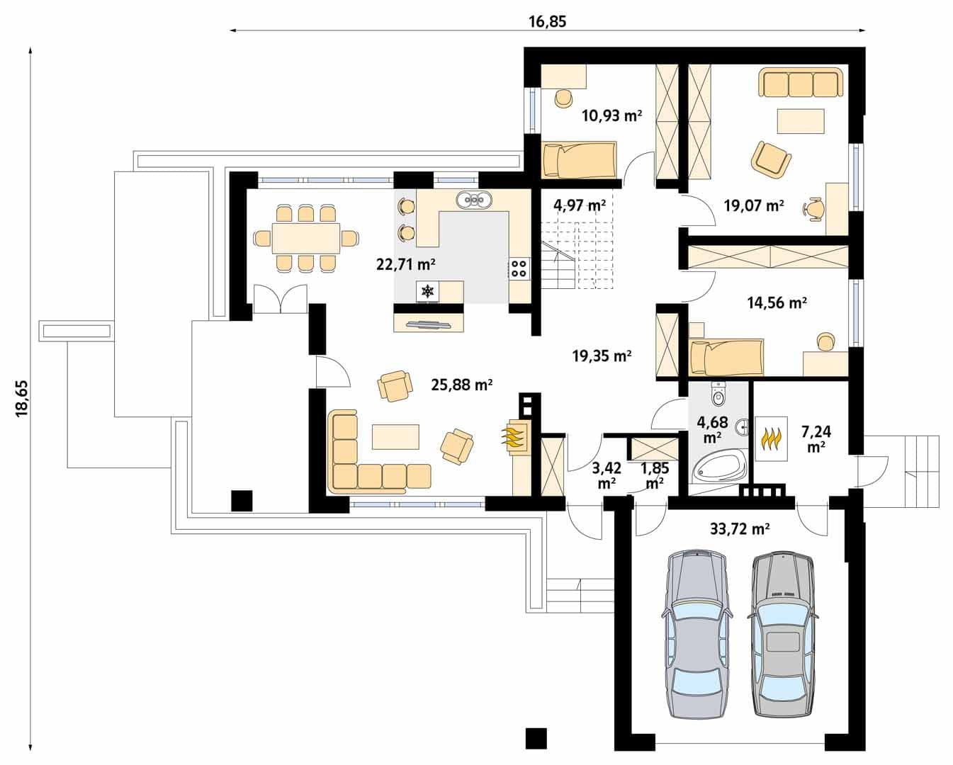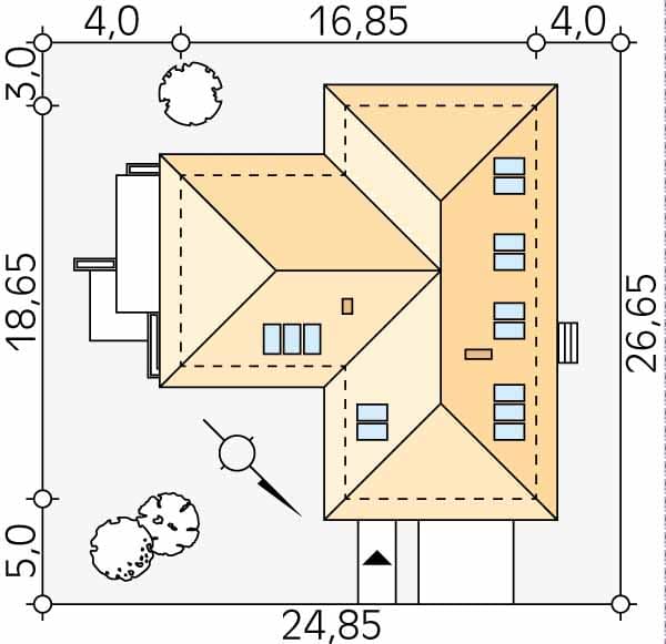 - Szerokość domu16.85 m