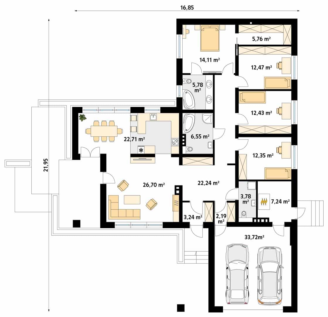 - Szerokość domu16.85 m