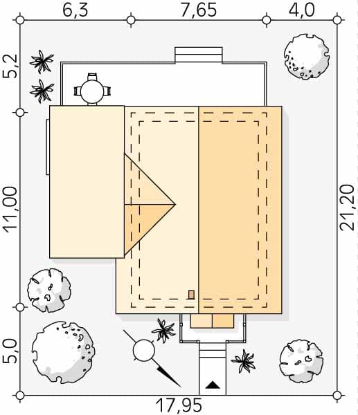 - Minimalne wymiary działki21.2 x 17.95m