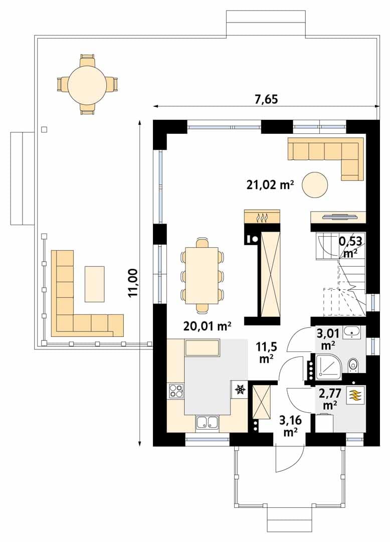 - Szerokość domu7.65 m