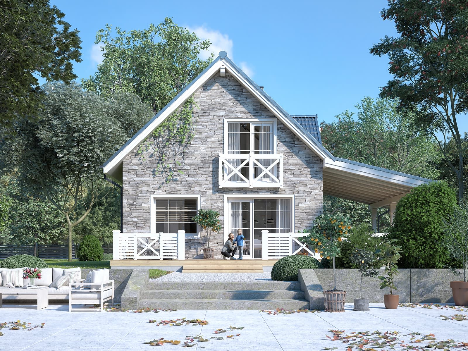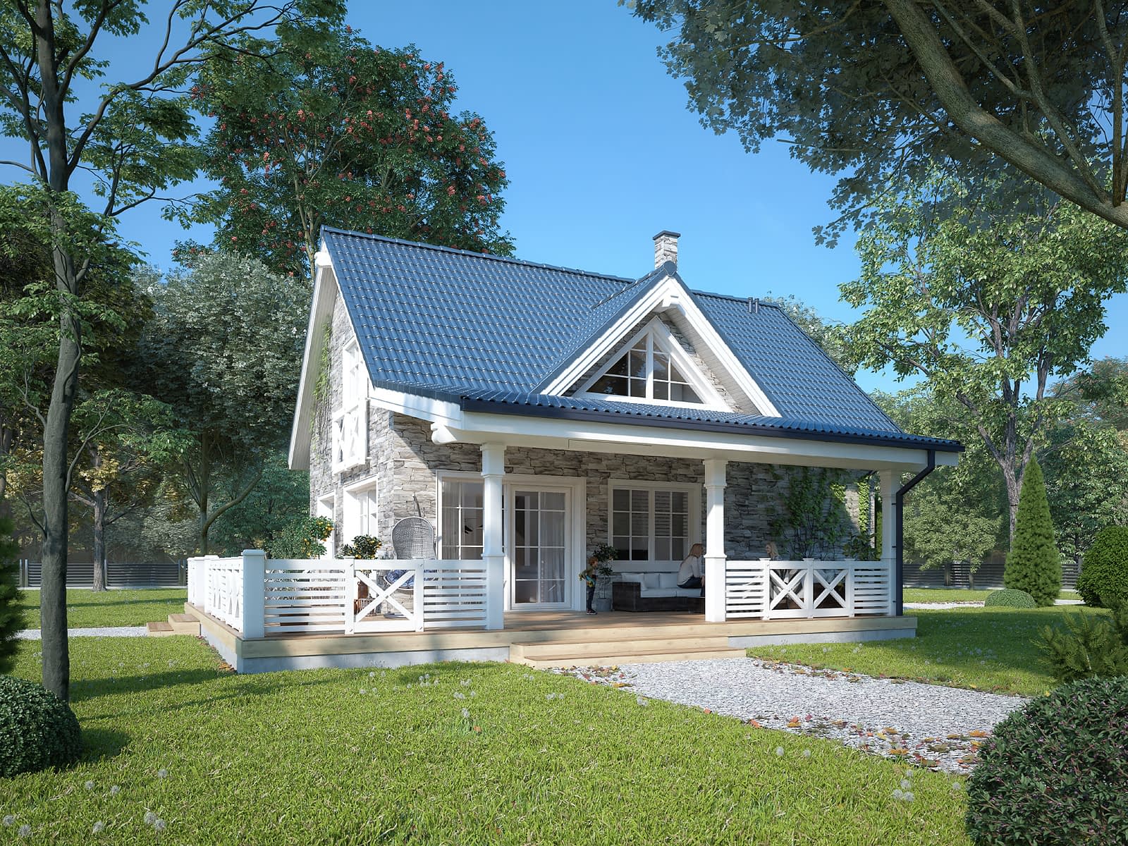 Aksamitka 3 to projekt domu z użytkowym poddaszem o powierzchni ok 112 m2. Prosta bryła została przykryta dwuspadowym dachem i wykończona w oryginalny sposób.Konstrukcja