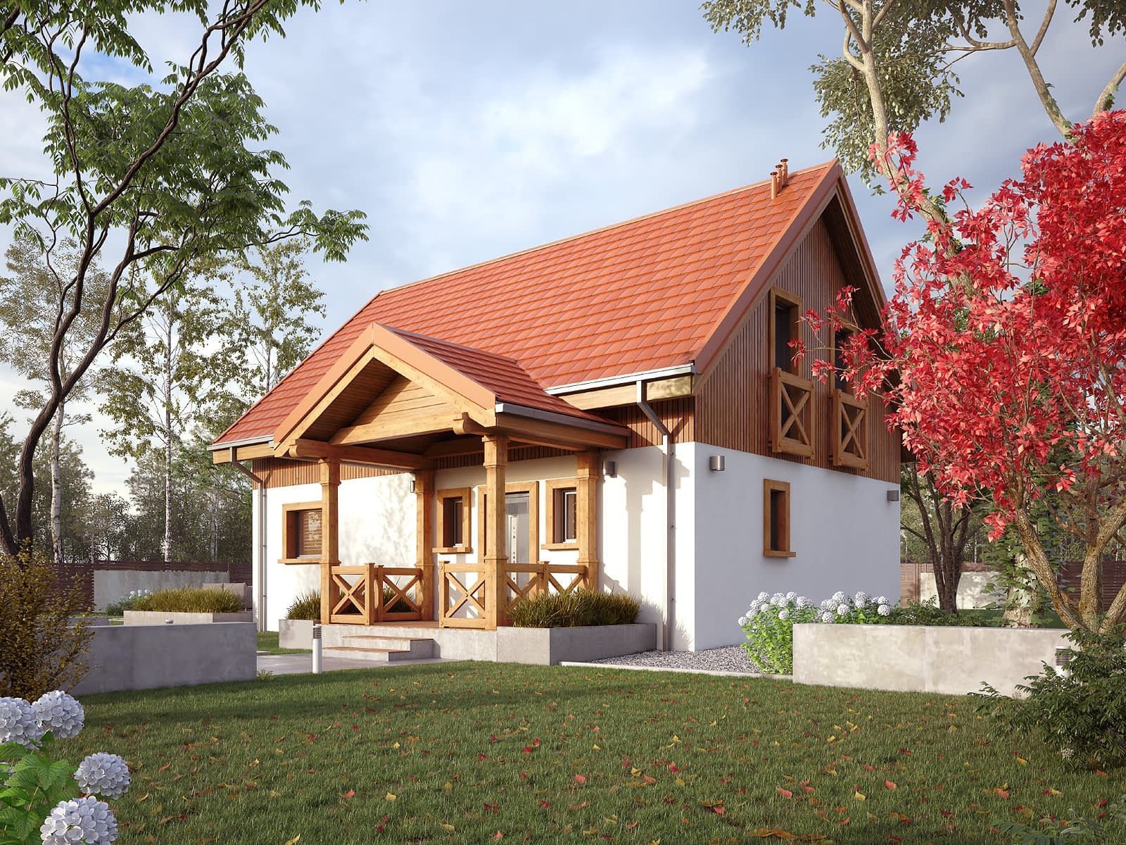 - rzuty poziome poszczególnych kondygnacji (parter, poddasze lub piętro),