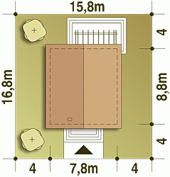 - Minimalne wymiary działki16.8 x 15.8m
