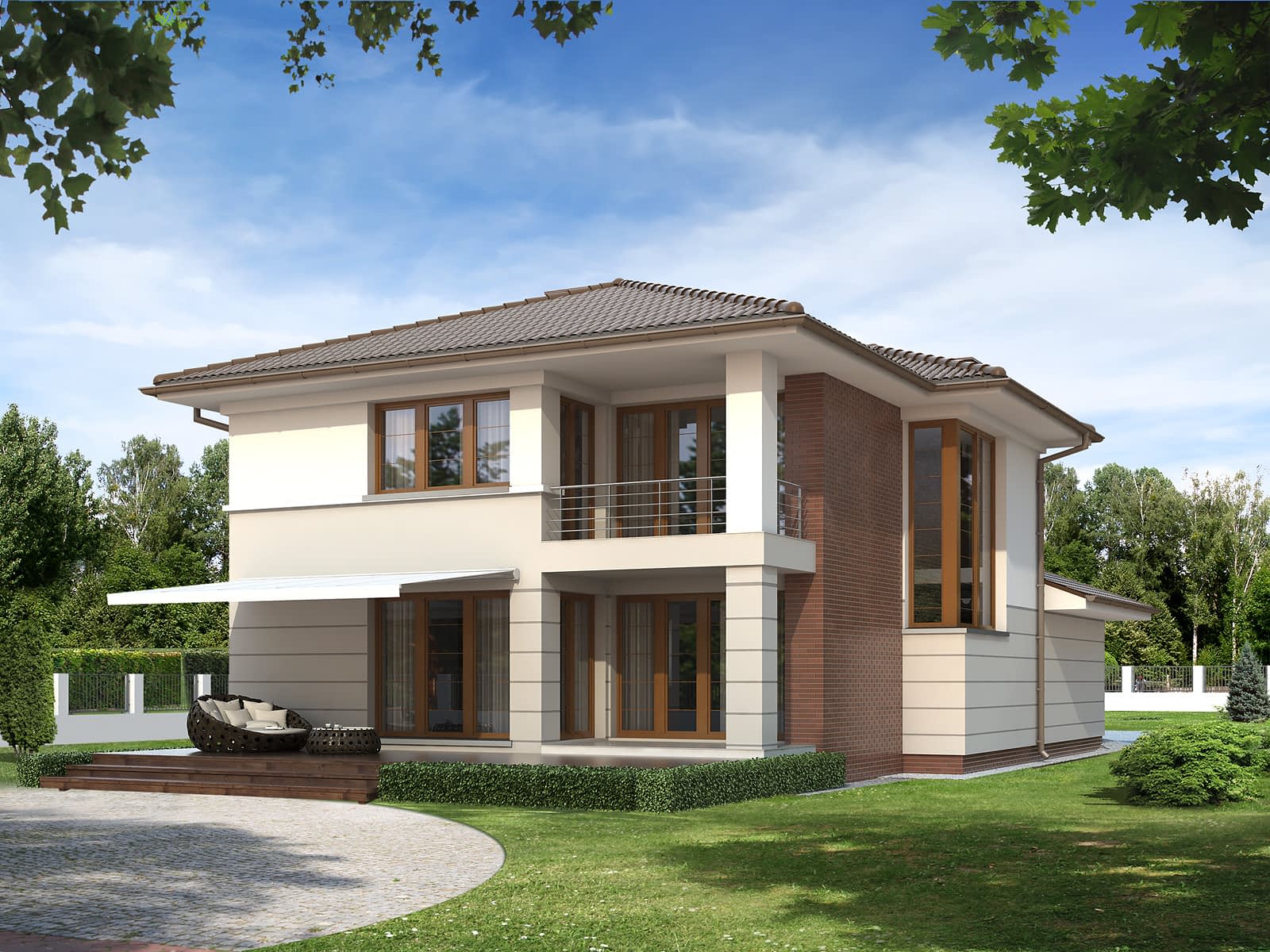 Dwukondygnacyjny budynek mieszkalny, przeznaczony dla 5 - osobowej rodziny. Budynek o ciekawej, eleganckiej architekturze. Przestronne wnętrze, z wyraźnym podziałem na część dzienną i nocną. Na parterze zaprojektowano dodatkowy pokój, na piętrze pojawia się wolna przestrzeń, którą można przerobić na sypialnię.Konstrukcja