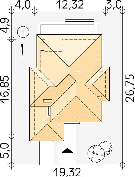 - Minimalne wymiary działki26.75 x 19.32m