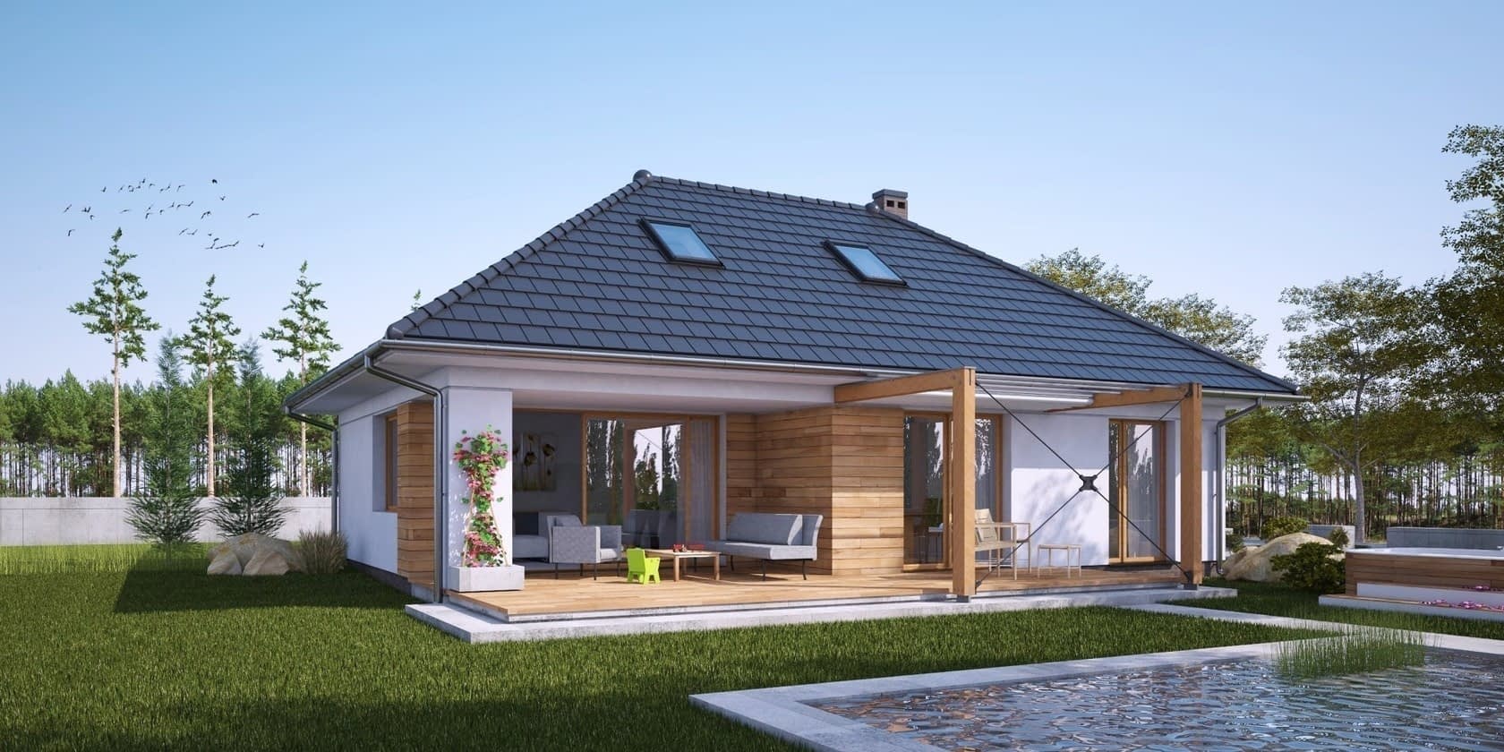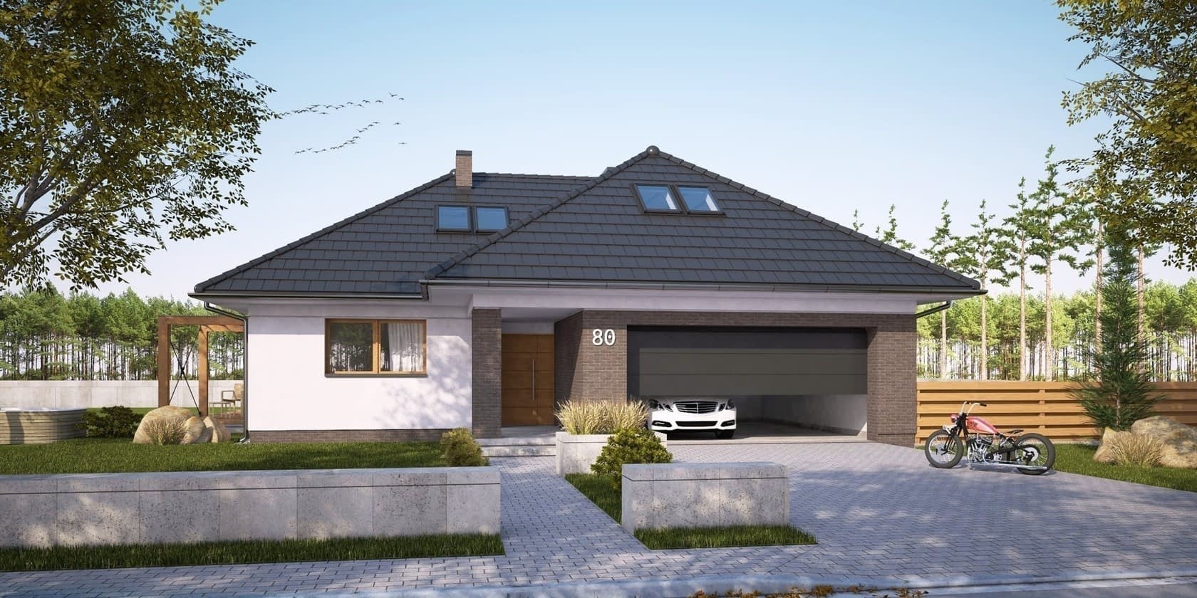 Komfortowy dom jednorodzinny, wolnostojący, niepodpiwniczony z poddaszem użytkowym i garażem dwustanowiskowym. Obszerna i jasna strefa dzienna na parterze z dużym tarasem.