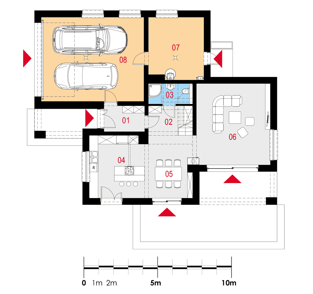 - rozwiązania zasadniczych elementów wyposażenia budowlano-instalacyjnego, zapewniając użytkowanie obiektu budowlanego zgodnie z przeznaczeniem, w szczególności instalacji i urządzeń budowlanych: wodociągowych i kanalizacyjnych, ogrzewczych, a w niektórych gotowych projektach budynków również gazowej i/lub wentylacji mechanicznej, jeśli wymienione wcześniej instalacje wymagane są ze względu na funkcję obiektu, a także sposób powiązania instalacji obiektu budowlanego z sieciami zewnętrznymi wraz z punktami pomiarowymi, założenia przyjęte do obliczeń instalacji oraz podstawowe wyniki tych obliczeń.