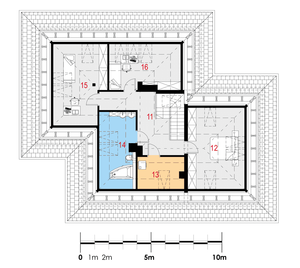 - rzuty wszystkich charakterystycznych poziomów obiektu budowlanego, w tym widok dachu lub przekrycia, przedstawiające również układ funkcjonalno-przestrzenny obiektu budowlanego,