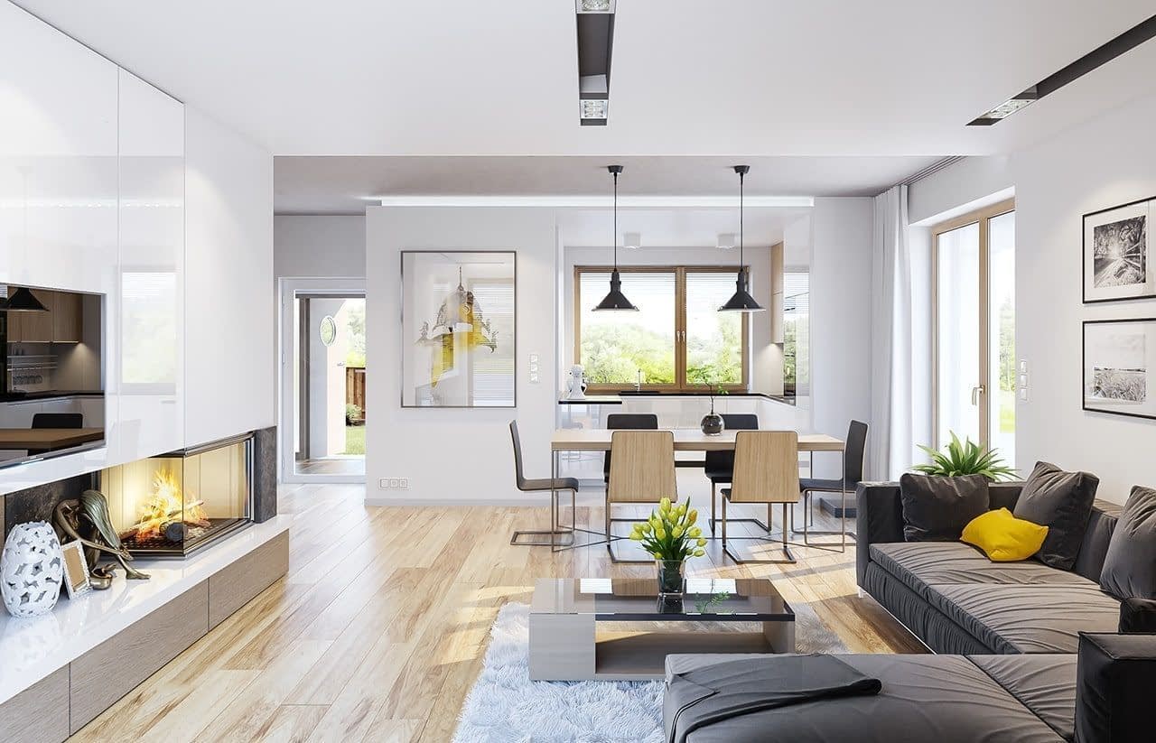 - Zmianę funkcji, ilości i usytuowania poszczególnych pomieszczeń na dowolnej kondygnacji w projekcie.