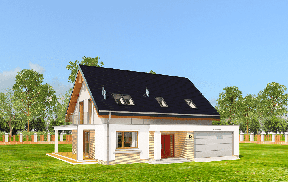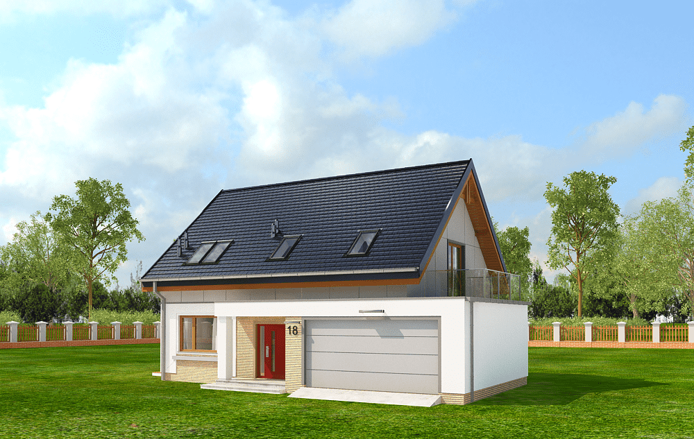 Projekt domu Albatros 2 jest wersją wariantową popularnego projektu „Albatros” z podwójnym garażem. Jest to prosty w budowie, niedrogi dom z poddaszem użytkowym dla 4-5 osobowej rodziny. Bryła budynku została zaprojektowana na planie prostokąta - do głównej bryły dobudowany jest częściowo wchodzący w nią garaż na dwa auta. Poddasze wieńczy symetryczny dwuspadowy dach. Projekt podporządkowano połączeniu ekonomicznych i funkcjonalnych rozwiązań, z nowoczesną i ciekawą estetyką budynku. Dom ma w sobie „to coś”: ciekawie dobrane materiały, dobre proporcje brył, właściwą wielkość okien, no i przede wszystkim – funkcjonalne, rozsądnie zaplanowane wnętrze. Parter domu, to przestrzeń dzienna, z wygodnym salonem, centralnym holem z ozdobnymi schodami, częściowo otwartą na salon kuchnią, oraz dodatkowy pokój - gabinet lub sypialnia gościnna i część gospodarcza, czyli garaż i kotłownia. Na poddaszu, dzięki wysokim ściankom kolankowym, mieszczą się trzy przestronne sypialnie, w tym sypialnia rodziców z osobną łazienka i garderobą. Dodatkowo przewidziano tu też miejsce na pralnię – ewentualnie schowek. „Albatros” mimo niewielkiej powierzchni jest przestronny i wygodny i zapewni komfortowe warunki do życia nawet licznej rodzinie. Energooszczędne rozwiązania – dobre docieplenia, zwarta bryła budynku - pozwolą ograniczyć koszty przyszłej eksploatacji, a prostota konstrukcji domu zapewni mniej stresów podczas budowy. Zapraszamy do zapoznania się z pełną ofertą pracowni MG Projekt: projekt domu Albatros