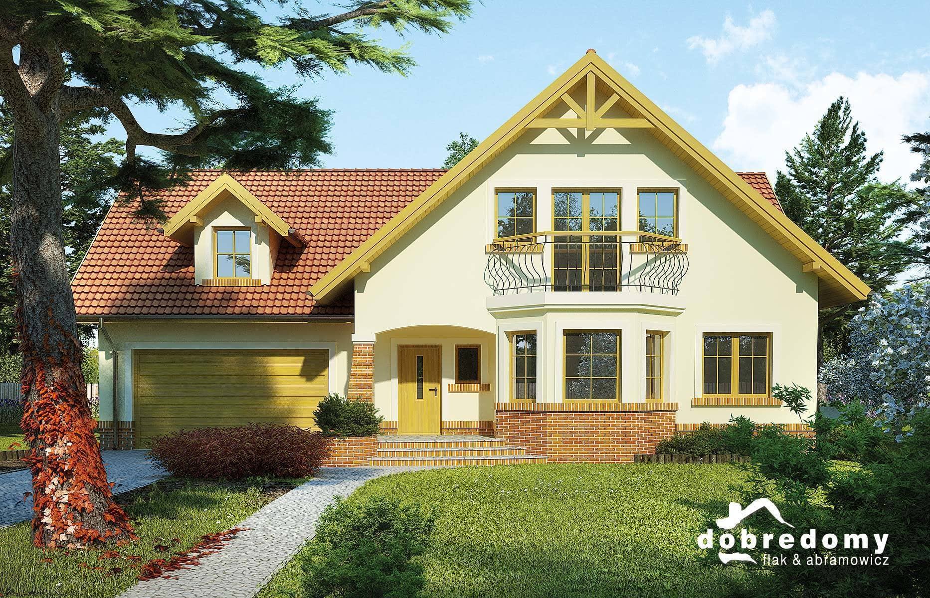 Dom z użytkowym poddaszem, dla 4-6-osobowej rodziny. Na parterze znajduje się pokój dzienny z wyjściem na zadaszony taras, kuchnia, jadalnia, spiżarnia, łazienka, pokój gościnny/gabinet oraz pomieszczenie gospodarcze dostępne z dwustanowiskowego garażu. Na poddaszu są trzy sypialnie, w tym jedna z własną garderobą, łazienka oraz obszerny strych, który można zaadaptować na dodatkowy pokój. Projekt dostępny w wersji z garażem jednostanowiskowym - Aleksander. Projekt może być wykorzystany do zabudowy bliźniaczej.