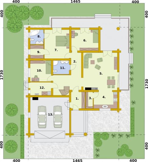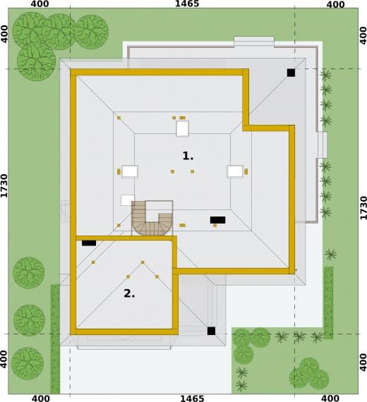 - Minimalne wymiary działki22.65 x 25.3m