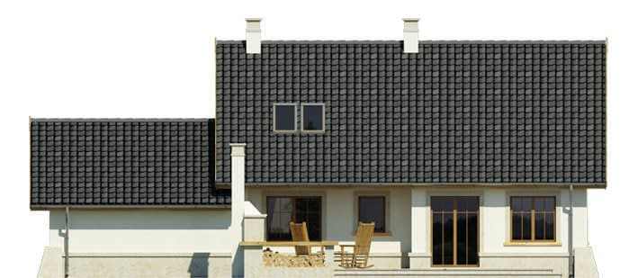 Elewacje pokryte tynkiem strukturalnym w systemie ociepleń Termo Organika. W projekcie zastosowano okna dachowe marki Fakro. Pokrycie dachu - dachówka ceramiczna lub cementowa.