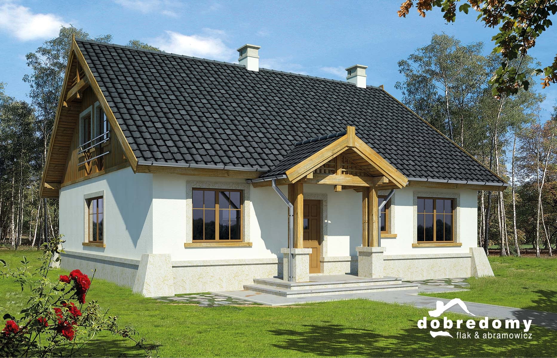 Elewacje pokryte tynkiem strukturalnym w systemie ociepleń Termo Organika. Pokrycie dachu - dachówka ceramiczna lub cementowa CREATON.