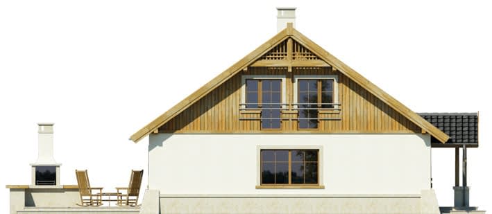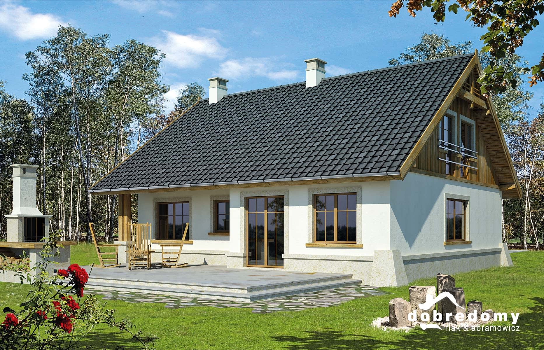 Dom z użytkowym poddaszem, przeznaczony dla 5-7-osobowej rodziny. Na parterze znajduje się pokój dzienny z bezpośrednim wyjściem do ogrodu, przestrzennie połączony z jadalnią i kuchnią, łazienka, dwa pokoje oraz pomieszczenie gospodarcze. Na poddaszu znajdują się trzy pokoje oraz przestronna łazienka. Centralnie usytuowany kominek pozwala na wykonanie ogrzewania kominkowego. Projekt dostępny w wersji z garażem jednostanowiskowym – Alfa I oraz z garażem dwustanowiskowym - Alfa II.