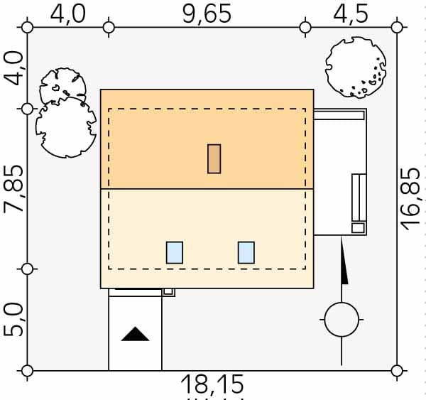 - Minimalne wymiary działki16.85 x 18.15m