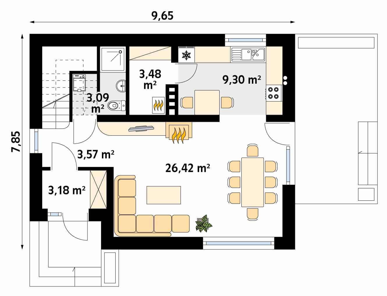 - Szerokość domu9.65 m