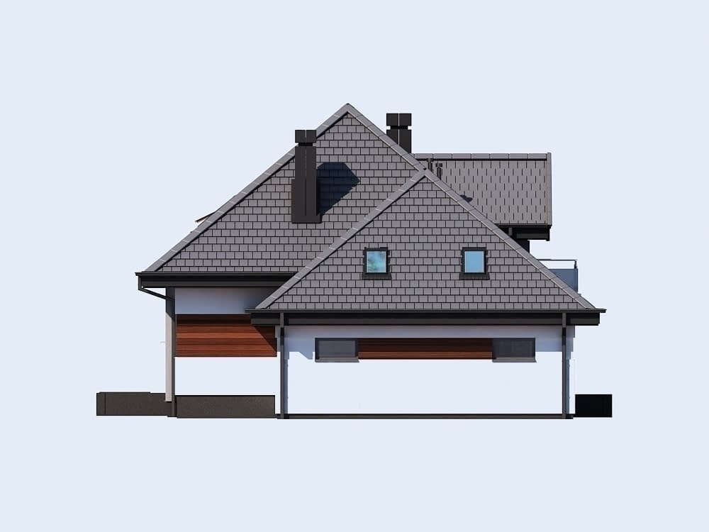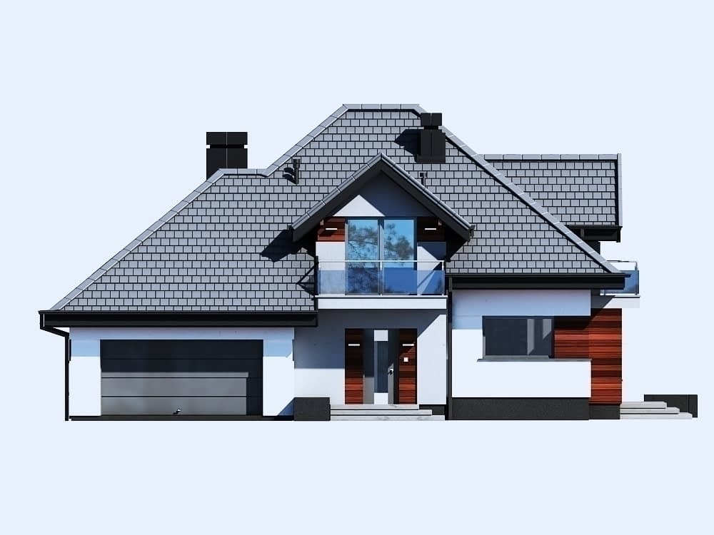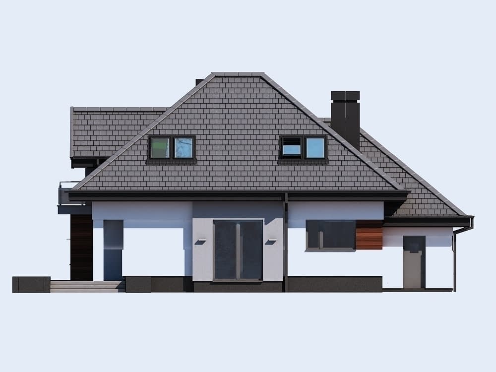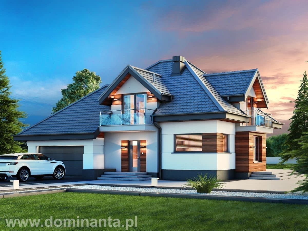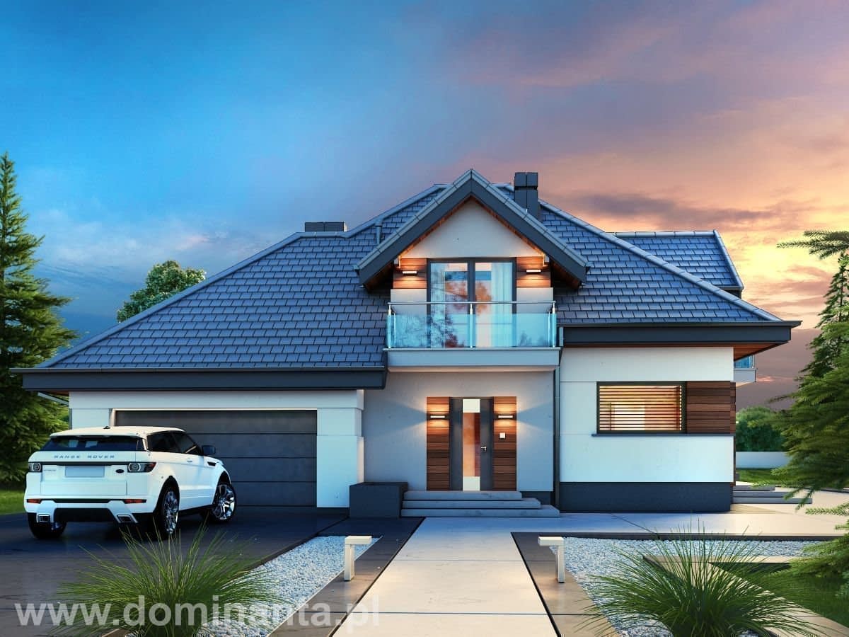 - wygodny jednorodzinny dom parterowy z poddaszem użytkowym i garażem dwustanowiskowym w obrębie bryły budynku (istnieje wersja jednostanowiskowa), niepodpiwniczony